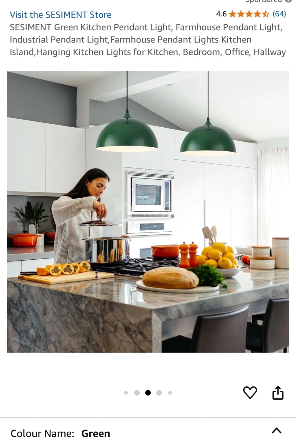 SESIMENT Green Kitchen Pendant Light, Farmhouse Pendant Light, Industrial Pendant Light,Farmhouse Pendant Lights Kitchen Island,Hanging Kitchen Lights for Kitchen, Bedroom, Office, Hallway Pick up Richmond Hill BRAND NEW IN BOX