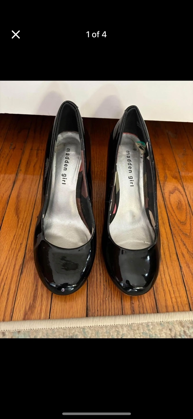 Good condition, Madden Girl (Steve Madden) black Pumps. Shiny patent leather material. Pick up at 1795 St.Clair West. Cash only. Asking Price $20.FIRM PRICE. LOW ballers will not be answered my price is fixed.