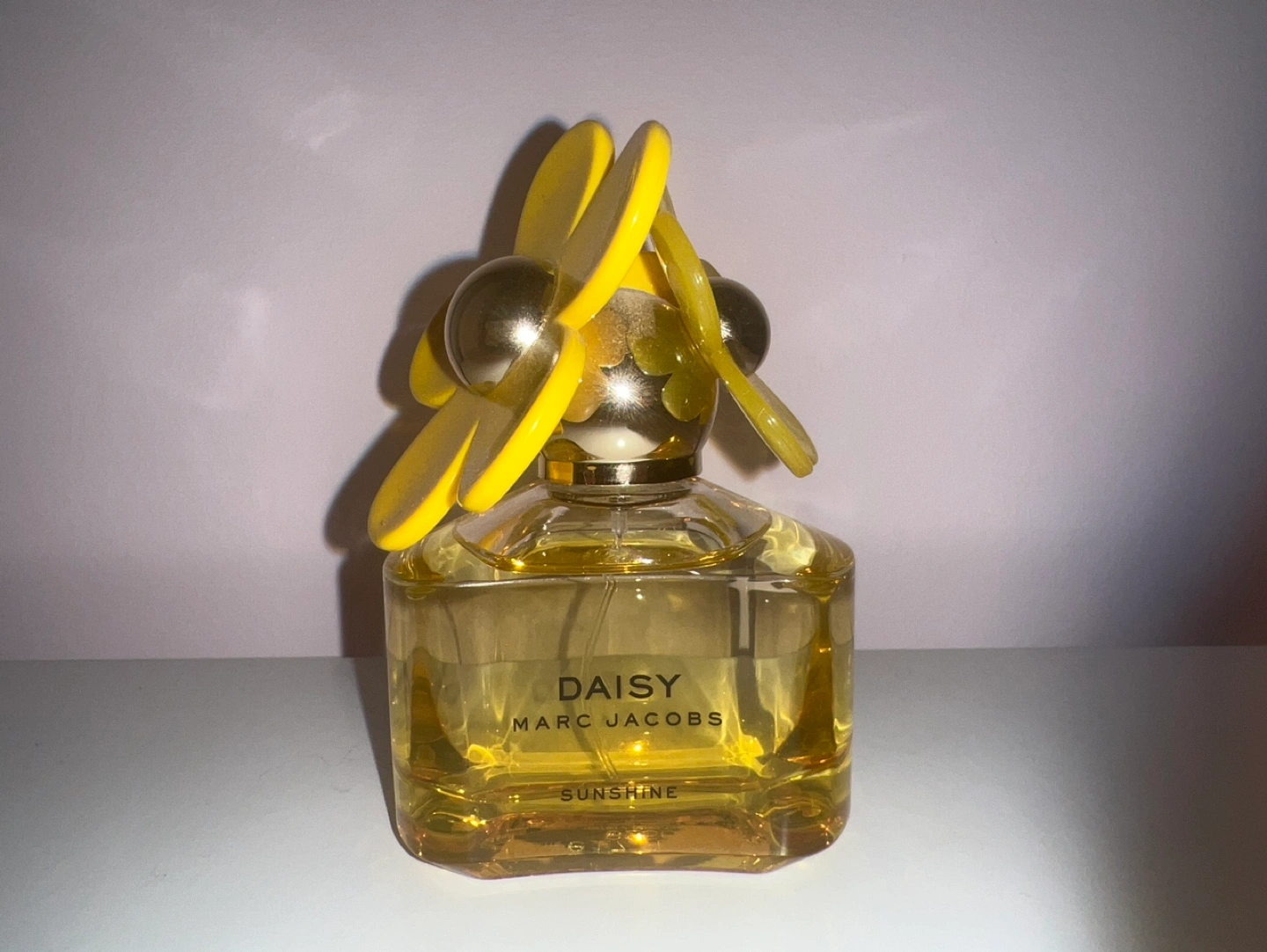 Daisy Sunshine perfume bottle. Yellow flower shaped cap. Bottle is full. Used only 2 times. Bought for 120$ selling for 50$