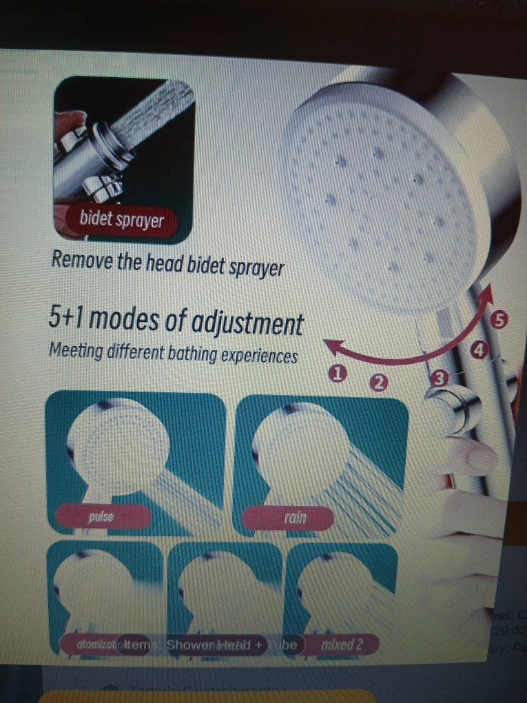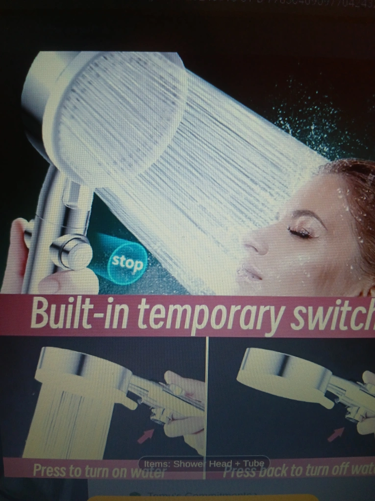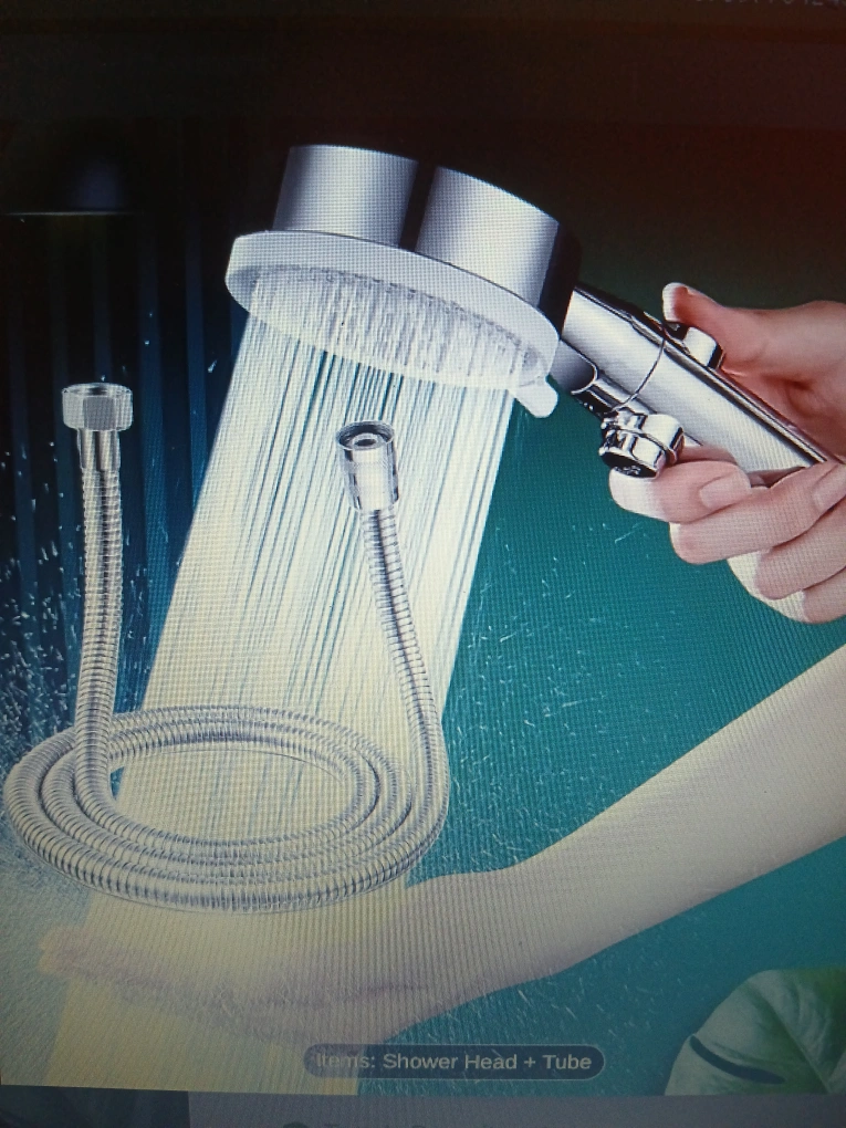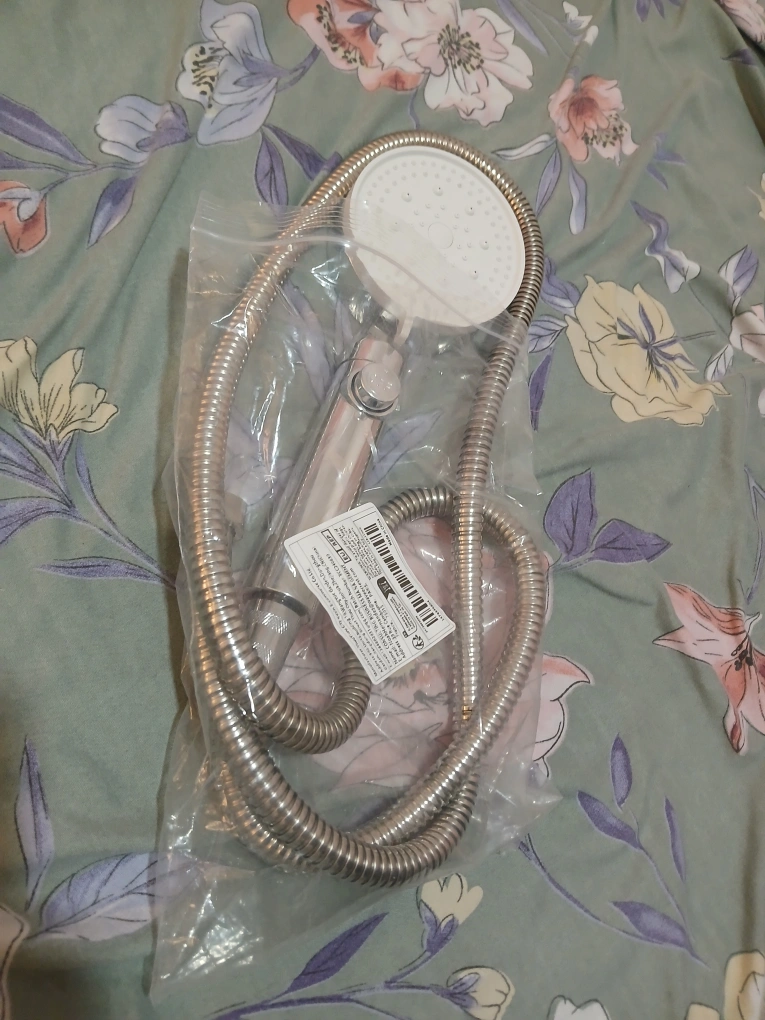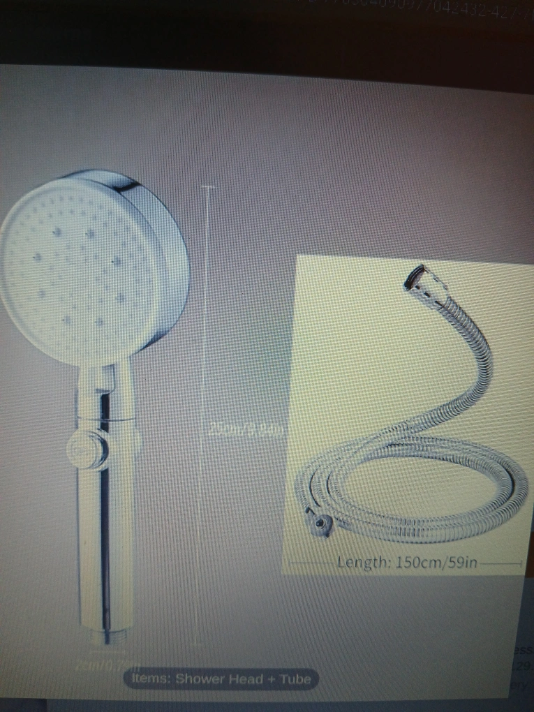 Shower head with 5 adjustable spray modes. Comes with a long, flexible hose and adjustable wall mount nail&punch-free shower head holder with strong load bearing.