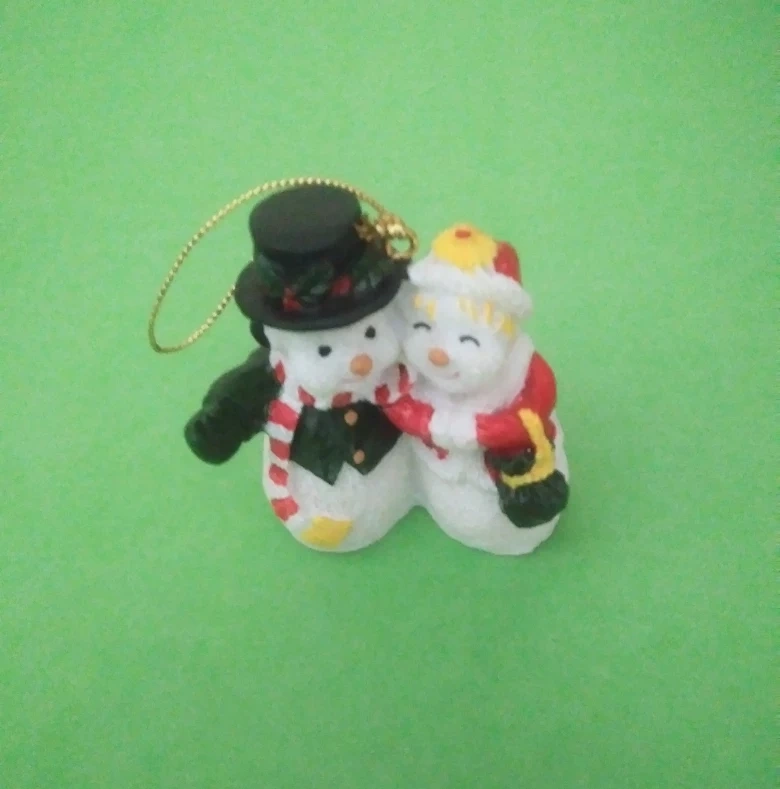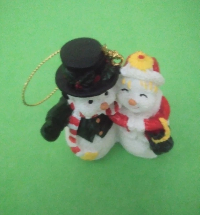 A brand new, small and cute Mr & Mrs Snowman figurine for just $2. This small decoration is suitable for hanging on the Christmas tree or can be displayed freestanding.
