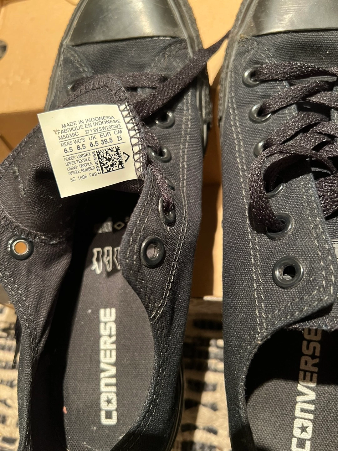 Converse Unisex Chuck Taylors- Black on black shoes and original box.