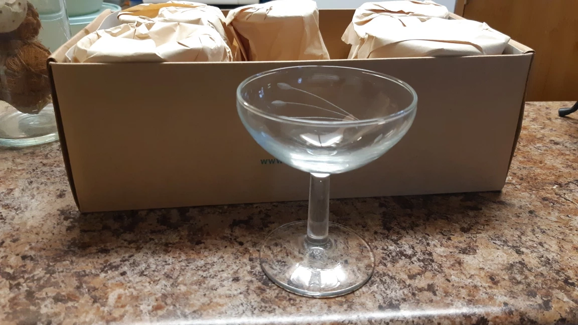 Set of four vintage champagne flutes. Clear glass with a delicate etched design. Excellent condition. made in France. my location is near Southgate mall