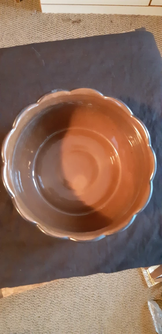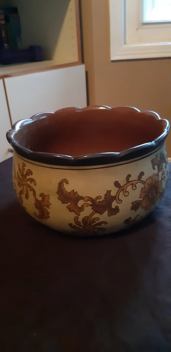 828Ceramic container has brown rim and floral pattern Great to hold plants/flowers Can be used as large serving bowl