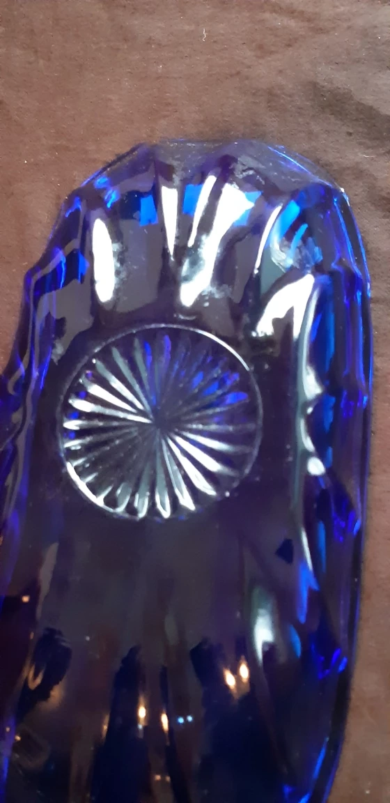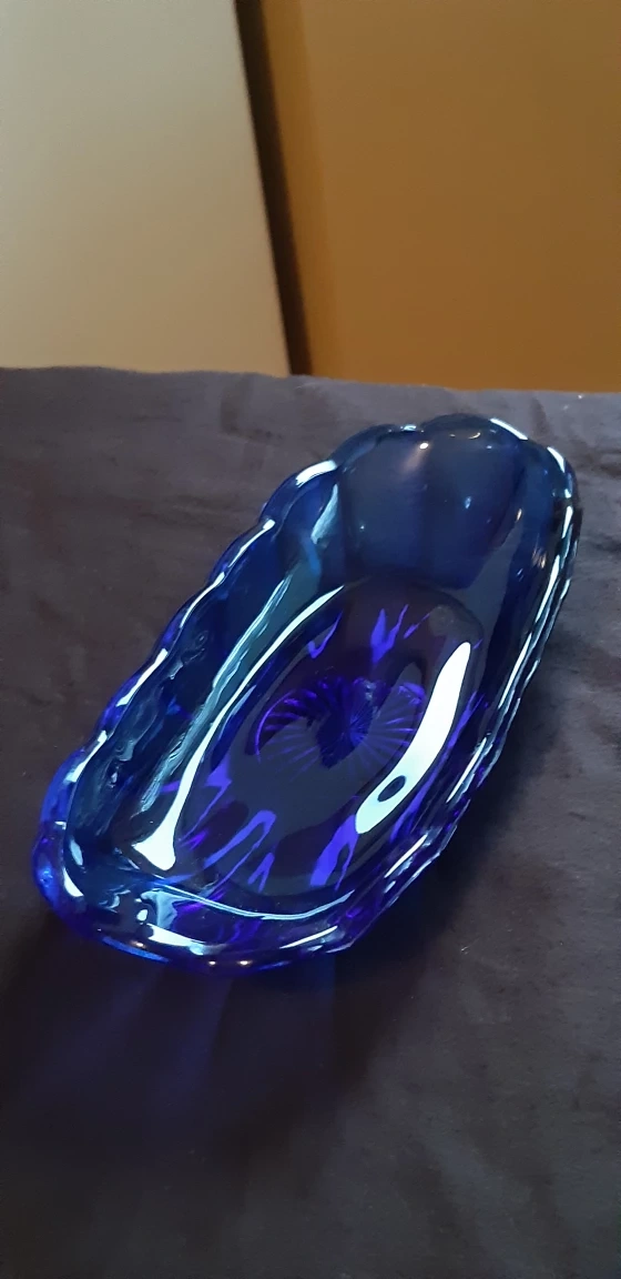 828Vintage cobalt blue glass dish Oval shaped with scalloped edge