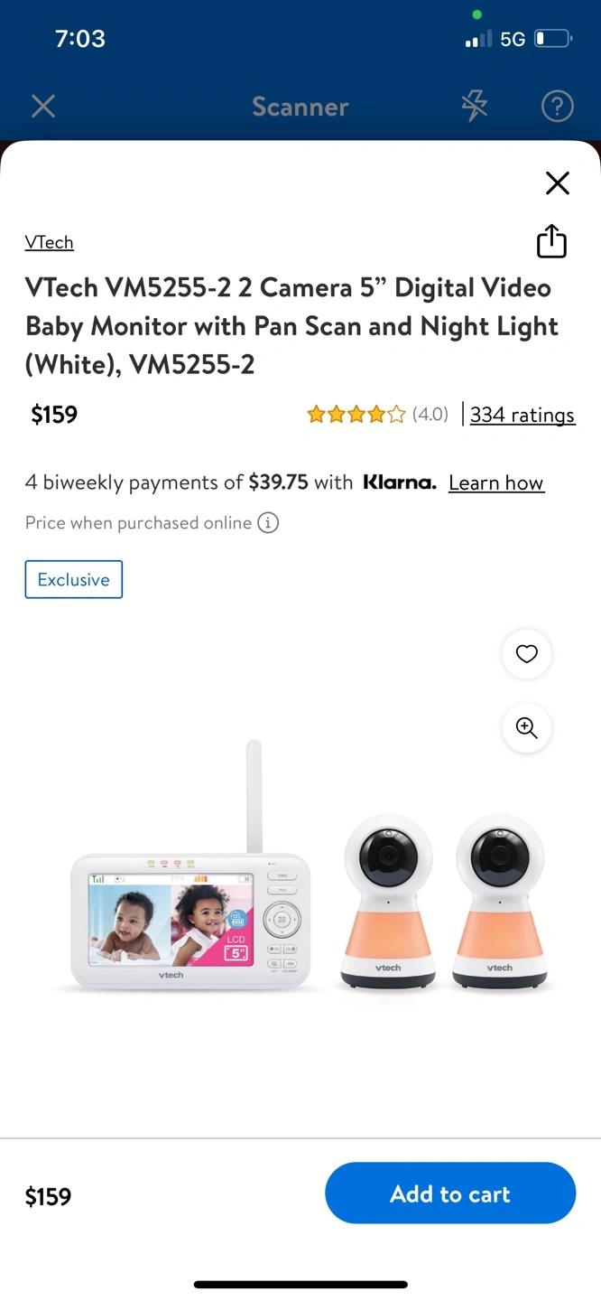 VTech VM5255-2 2 Camera 5” Digital Video Baby Monitor with Pan Scan and Night Light (White), VM5255-2