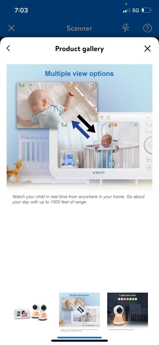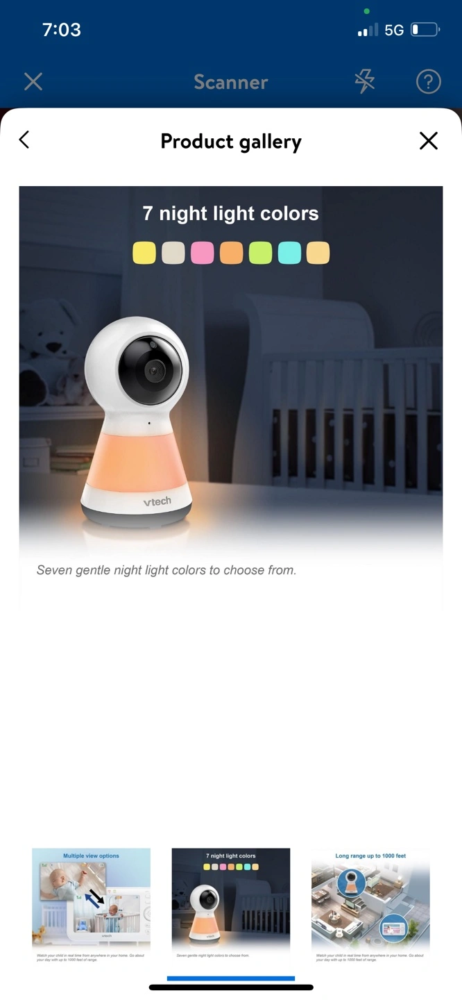 2 Camera Digital Video Baby Monitor with Pan Scan and Night Light, 1000 feet of range, Temperature sensor, 7 Night light colours, Sound activation mode