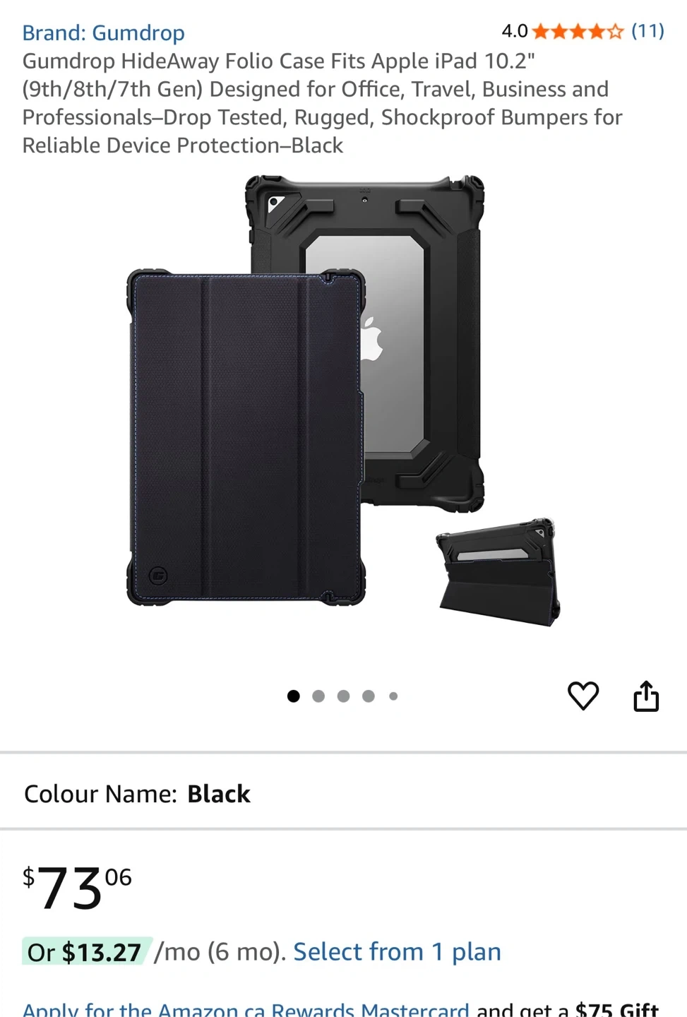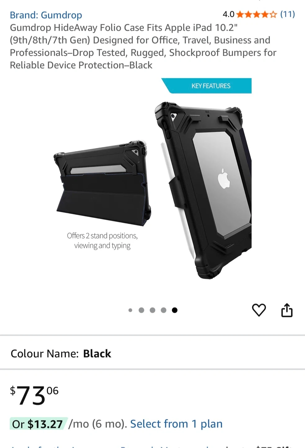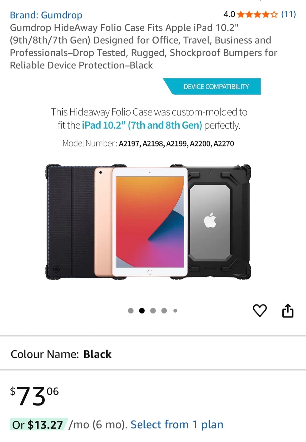This Gumdrop HideAway Folio case is designed for Apple iPad 10.2" (9th, 8th, and 7th Gen models). It offers drop-tested protection with rugged, shockproof bumpers. The folio design provides versatility for viewing and typing.