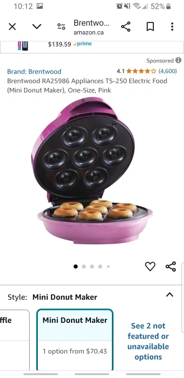 Brentwood RA25986 Appliances TS-250 Electric Food (Mini Donut Maker), One-Size, Pink color