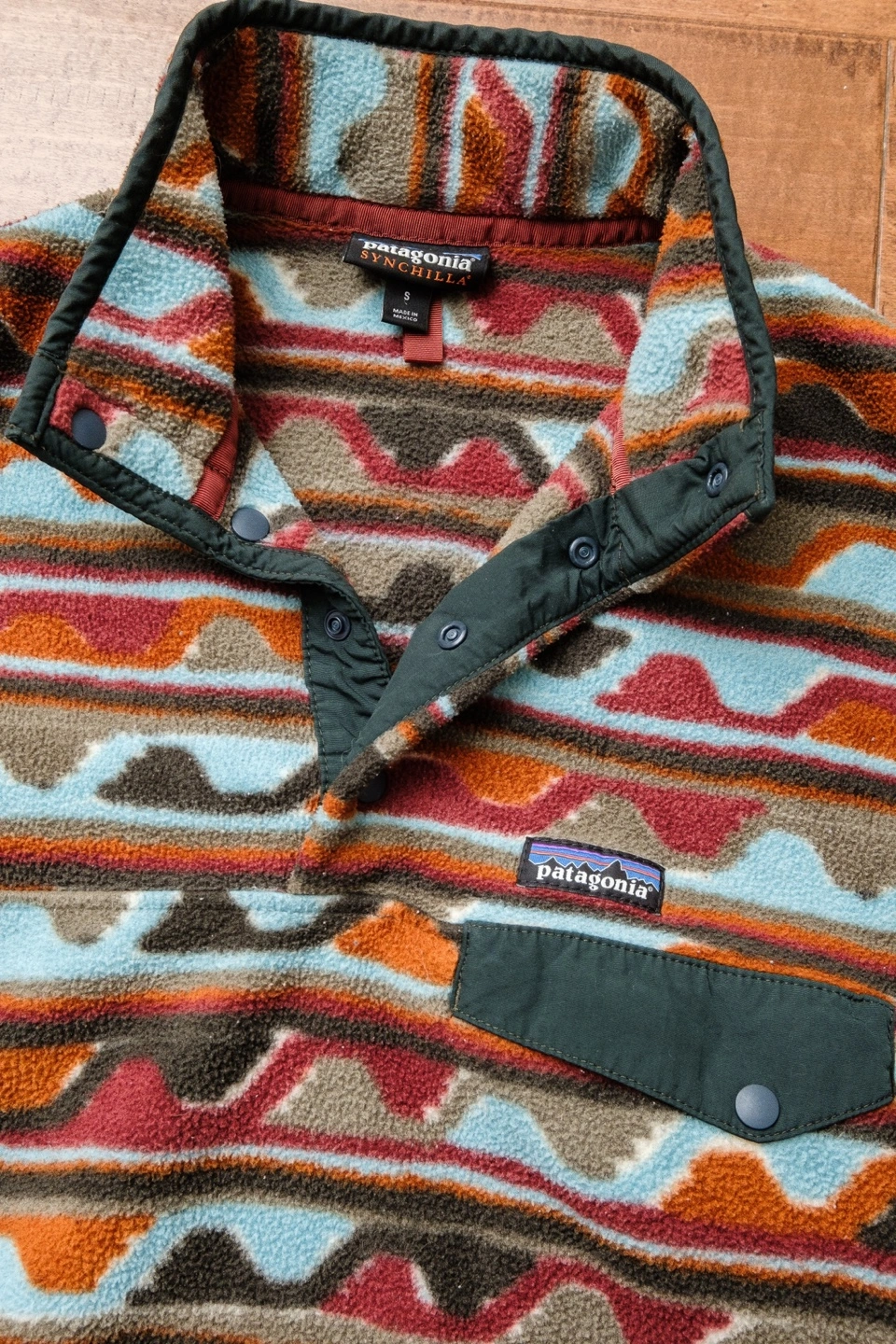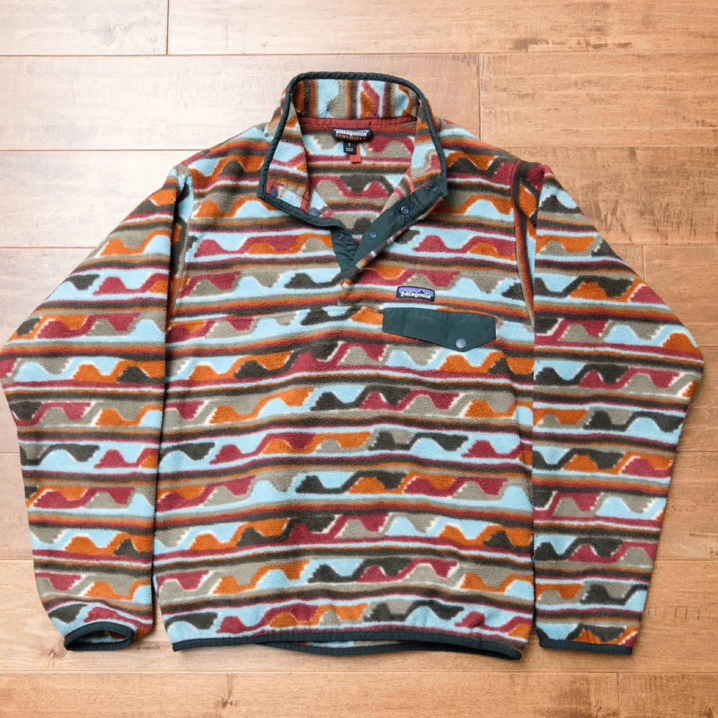 68Multicoloured fleece with a snap button placket. Features a chest pocket. Long sleeves. Very warm and comfortable.