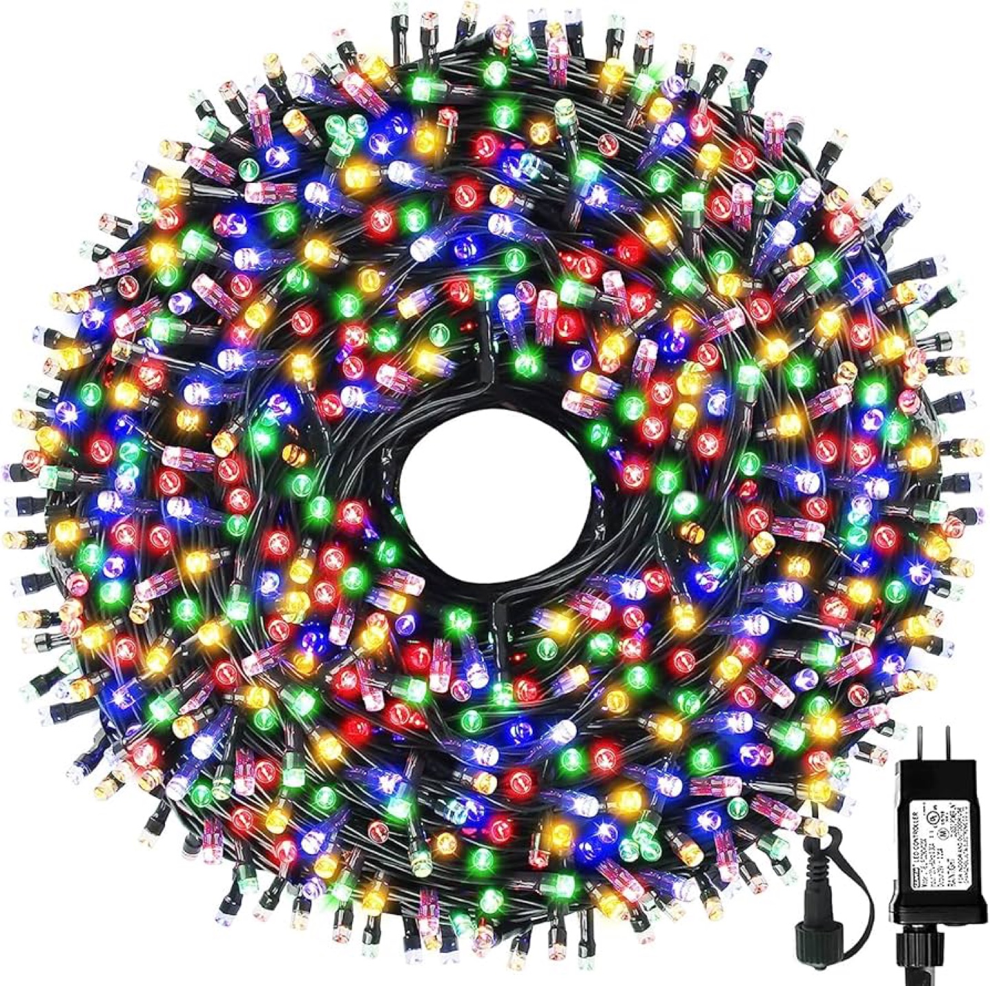 Multicolor Christmas lights, 105ft long. 8 lighting modes with memory function. UL Listed, end to end connectable.