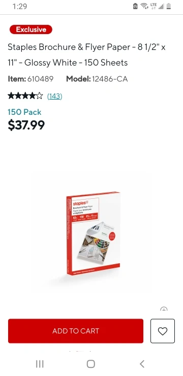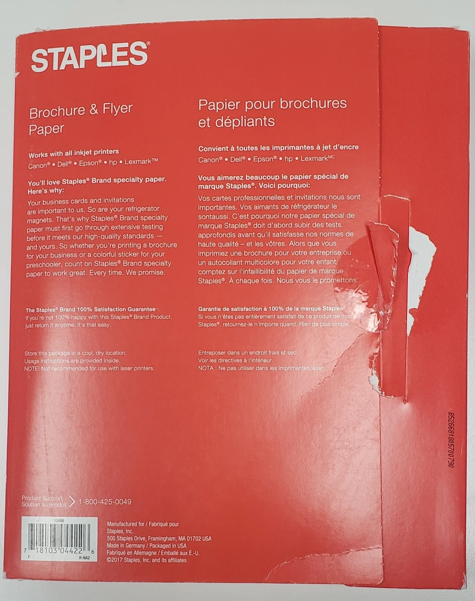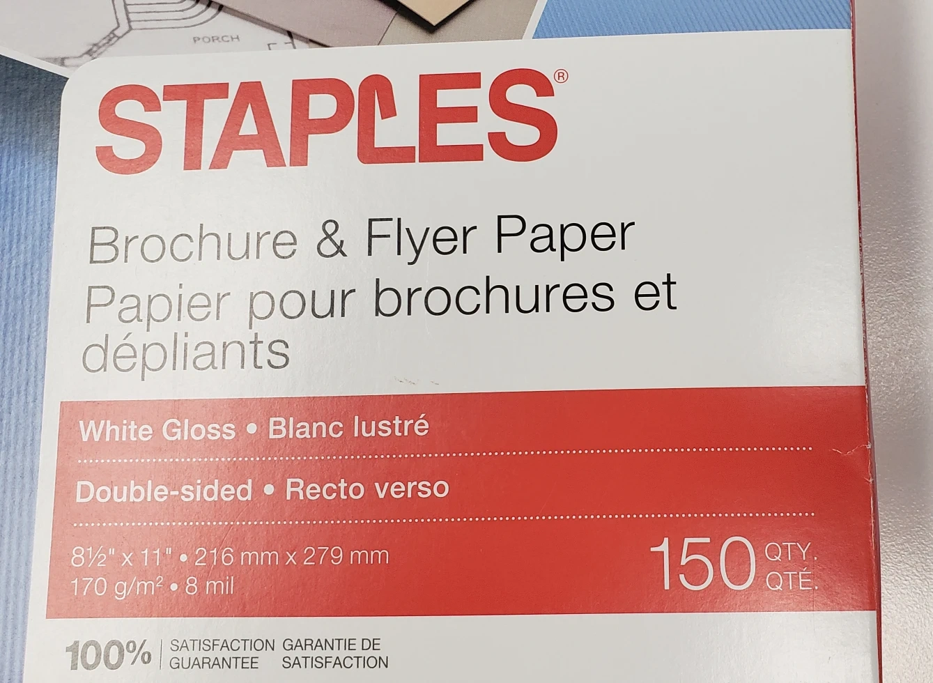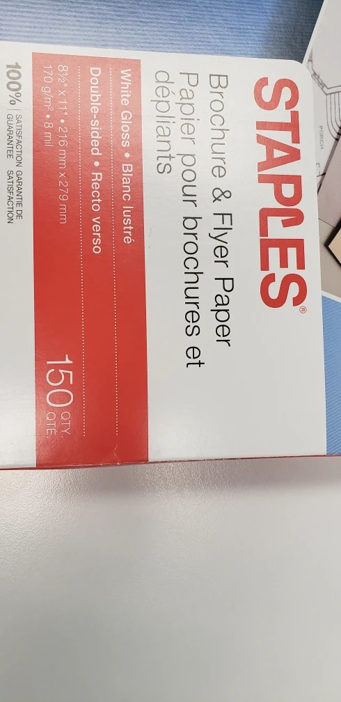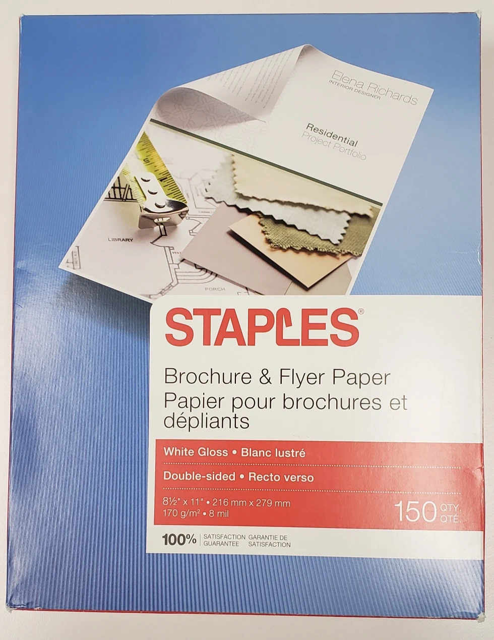 STAPLES Brochure and Flyer Paper pack of 150. White Gloss.