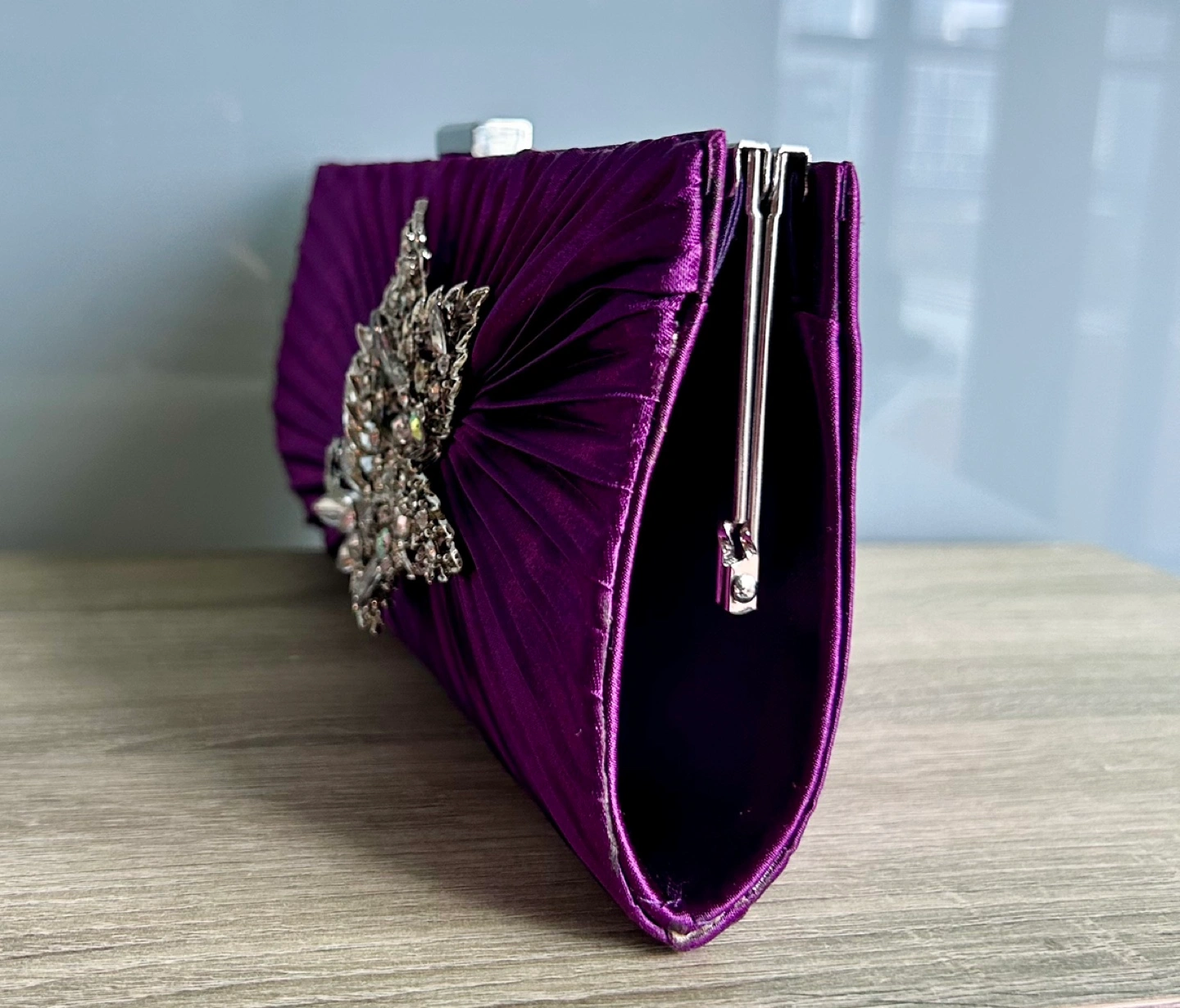 Satin purple and silver crystal evening purse π