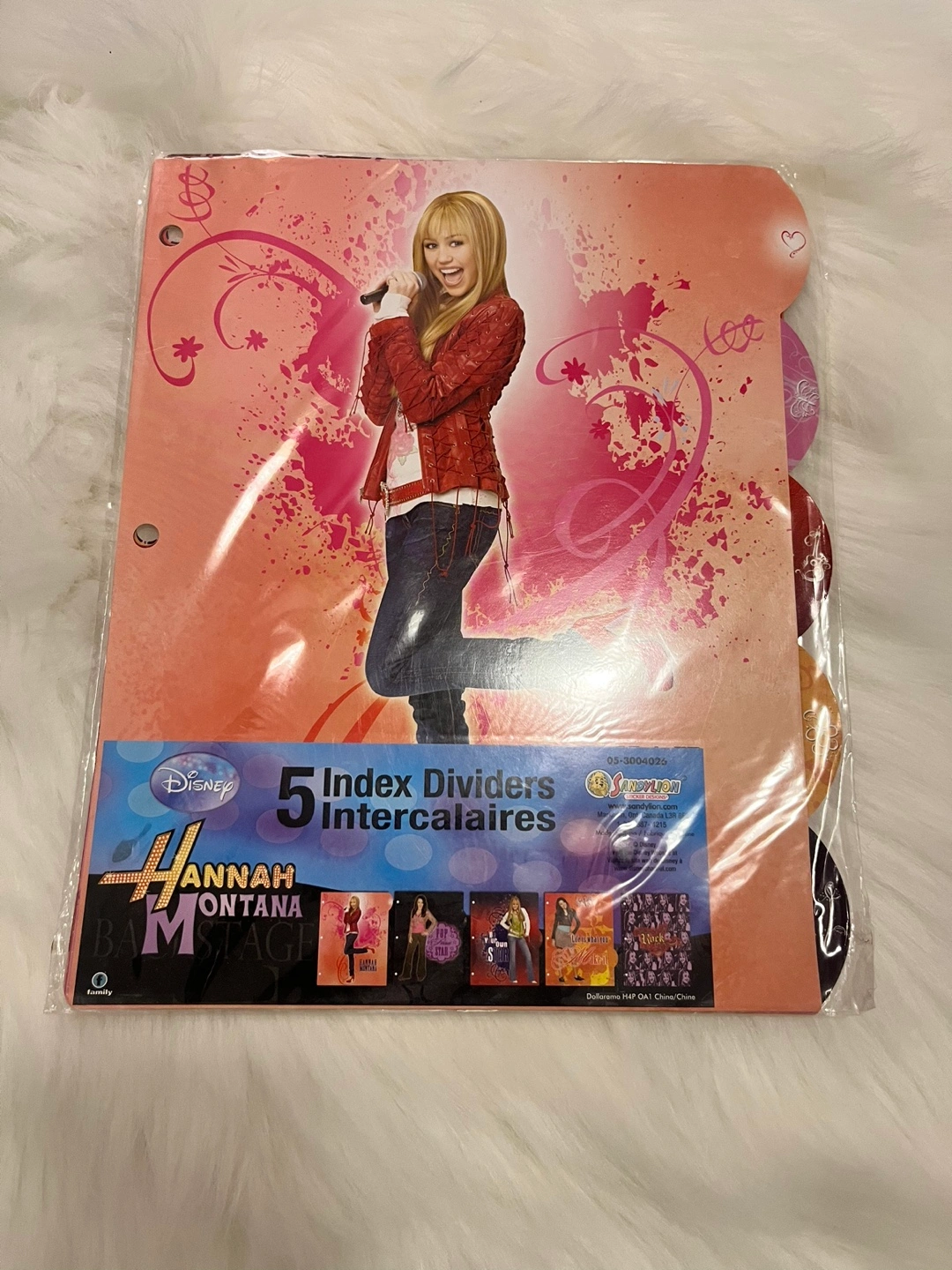 Set of 5 index dividers featuring Hannah Montana. Pink with a glitter finish. New and sealed.
