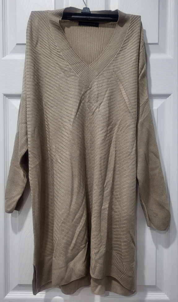 Long-sleeved v-neck sweater. Soft, lightweight material. Great for layering.