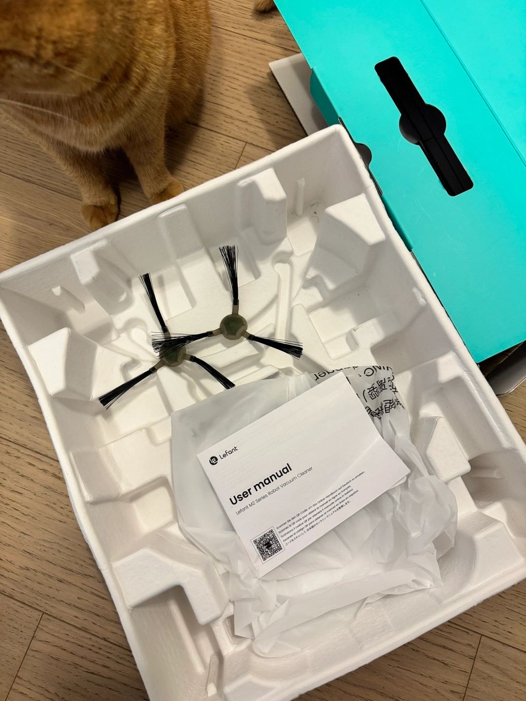 Includes charging station, extra brushes, and user manual.