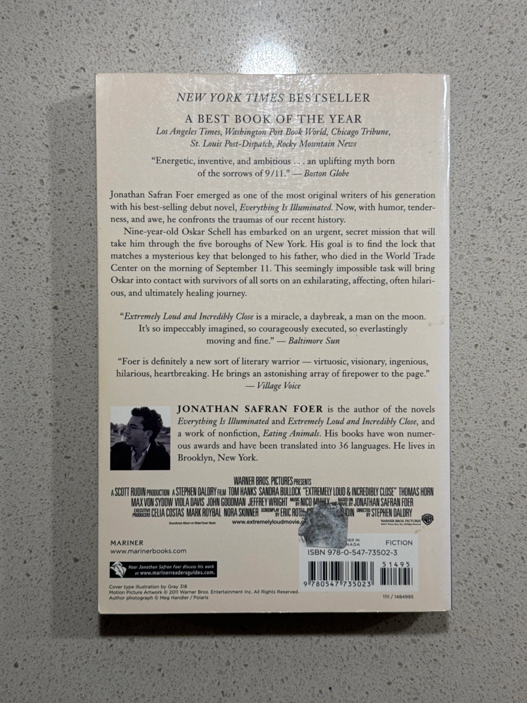 Paperback novel. Jonathan Safran Foer. New York Times Bestseller.