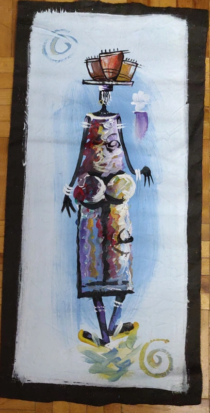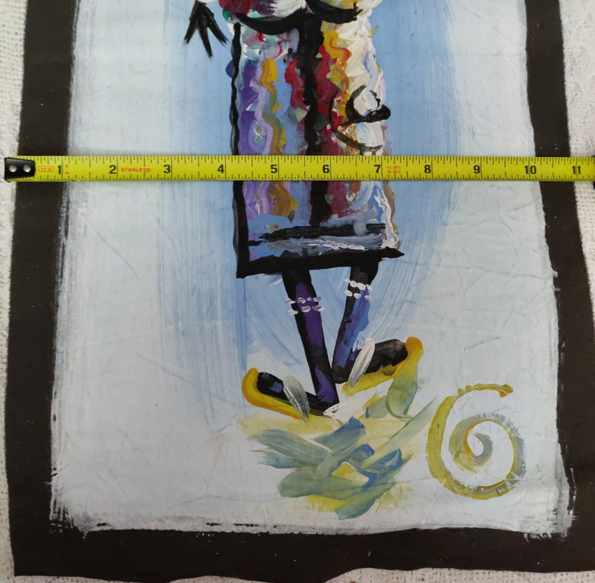 511Hand painted on fabric. Female figure. Measures approximately 22 inches by 10.75 inches. This is a beautiful unique piece in great condition. Can be framed and used as wall decor. From smoke-free pet-free home.