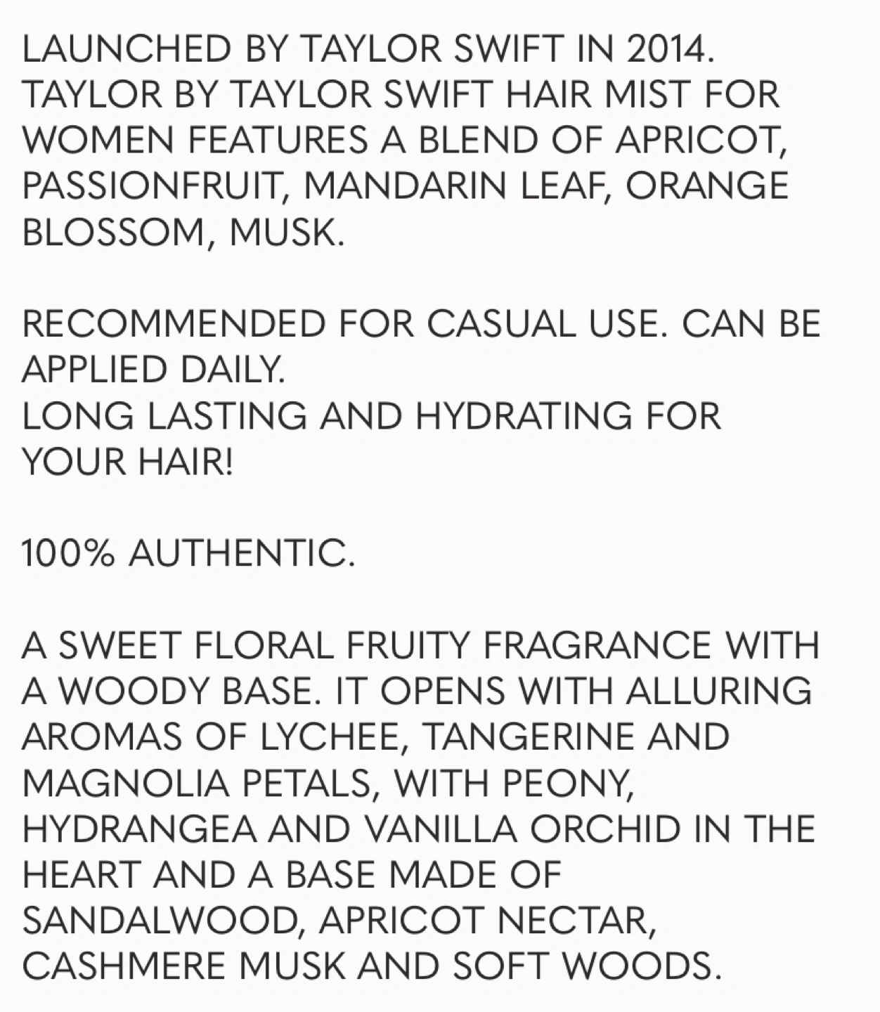 Rare! Sold out in all retailers (only available through resellers like eBay). Grab this authentic Taylor Swift scented hair mist for your eras concert pre-parTAY! 4.2 fl oz. Brand new, full bottle, authentic.