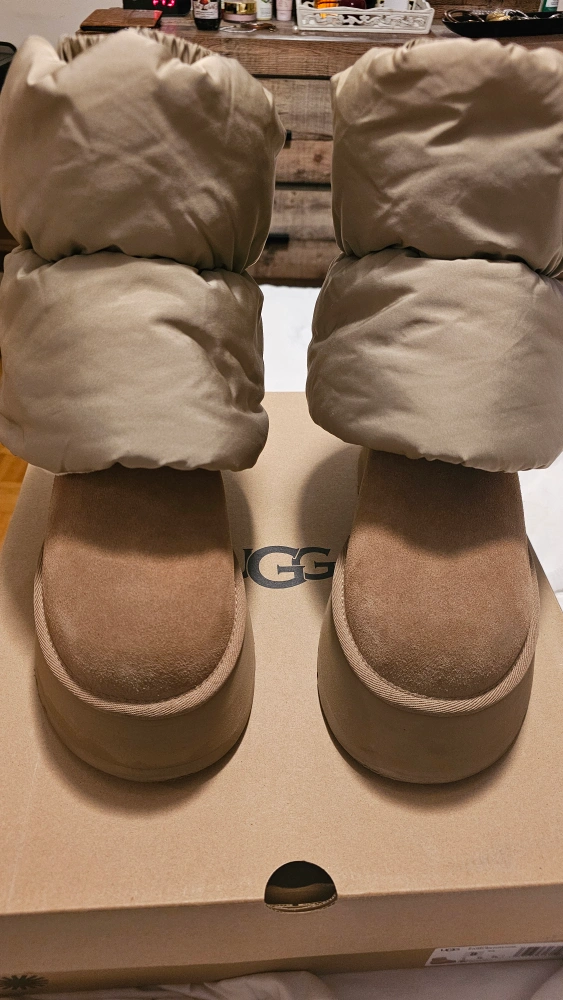 Quilted, puffer-inspired upper that’s perfect for winter. This cozy boot includes UGG’s signature sheepskin lining for warmth and a lightweight outsole with enhanced traction. The water-resistant material makes it ideal for casual wear in cooler weather, combining practicality with a sleek, modern look.