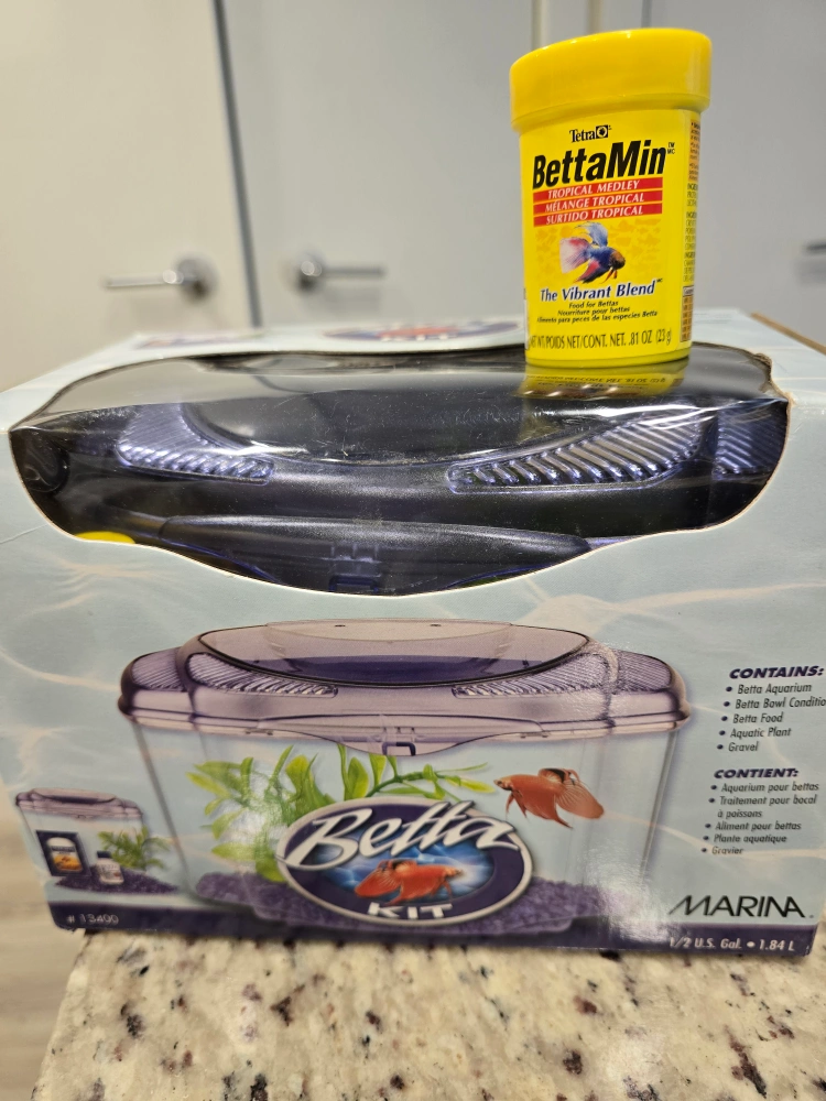 Betta kit includes all accessories,BettaMin fish food, a water conditioner, and matt.