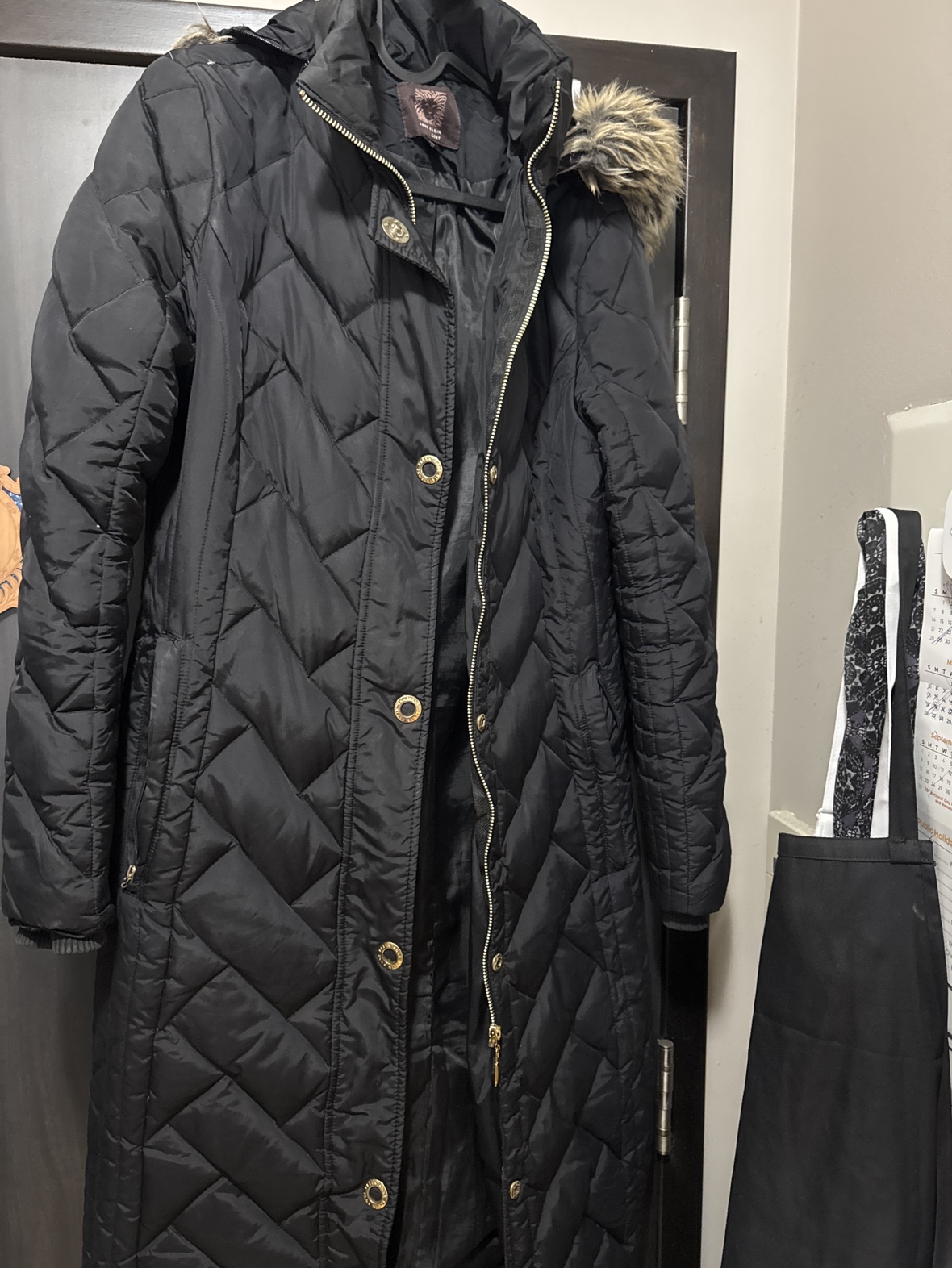 In good condition. Anne Klein winter jacket size small for free. Just the right side pocket has been torn and the left side pocket is a bit jammed. Comes with the original hood. Hope this keeps someone warm during the winter pick up near Yonge Street and Shuter Street.