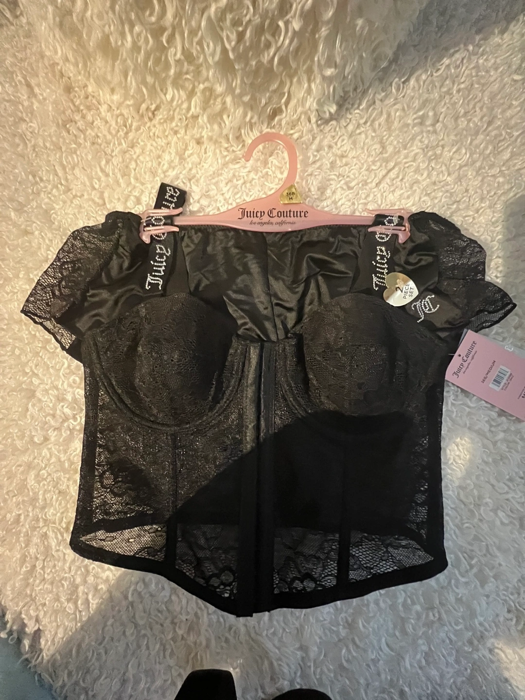 Black lace corset and shorts set. Has adjustable straps and ruffles on the shorts. New with tags.