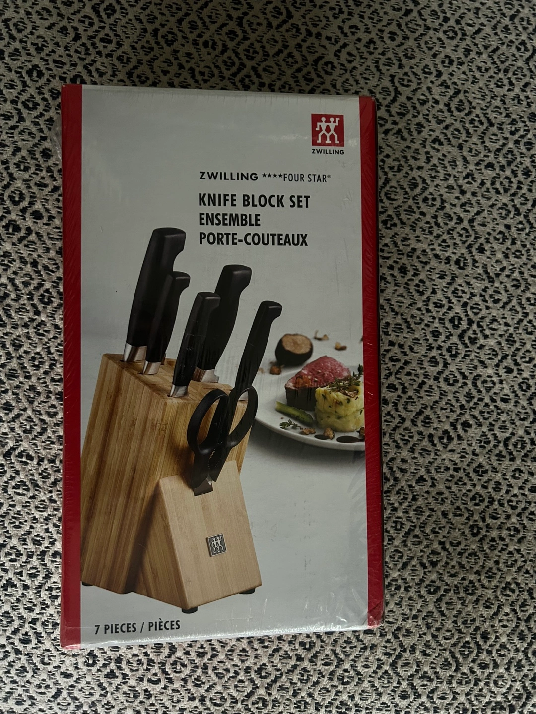7 piece knife block set, includes knives and kitchen shears. The set is unused and still in original packaging. Selling as we already have a set and have no use for this one. Retails for $280 plus tax. Please message with any questions :)