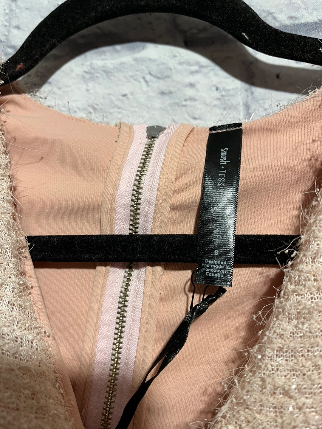 Size Small. Pink Fizz colour. Short sleeves, wrap-style skirt, zipper in the back. New with tag, retail is $130. Open to reasonable offers.
