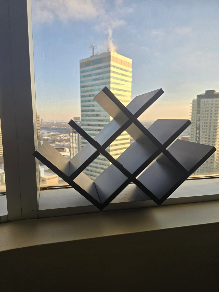 Brown wooden wine rack. Holds eight bottles. Could be used to display other items as well (e.g. air plants, Christmas decor, etc). It's in great condition but, we don't use it so it needs a new home.
