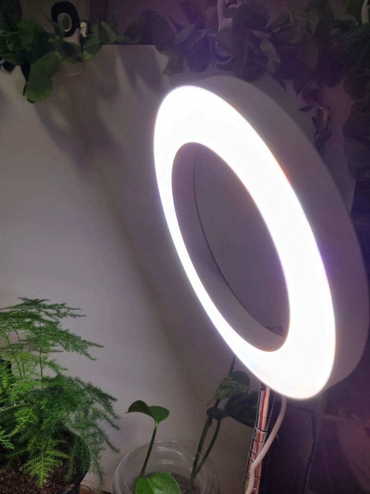 Ring shaped plant light with a stand.