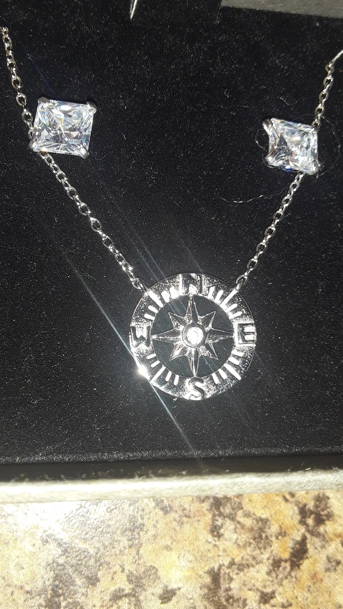 Swarovski earrings and compass/direction set.