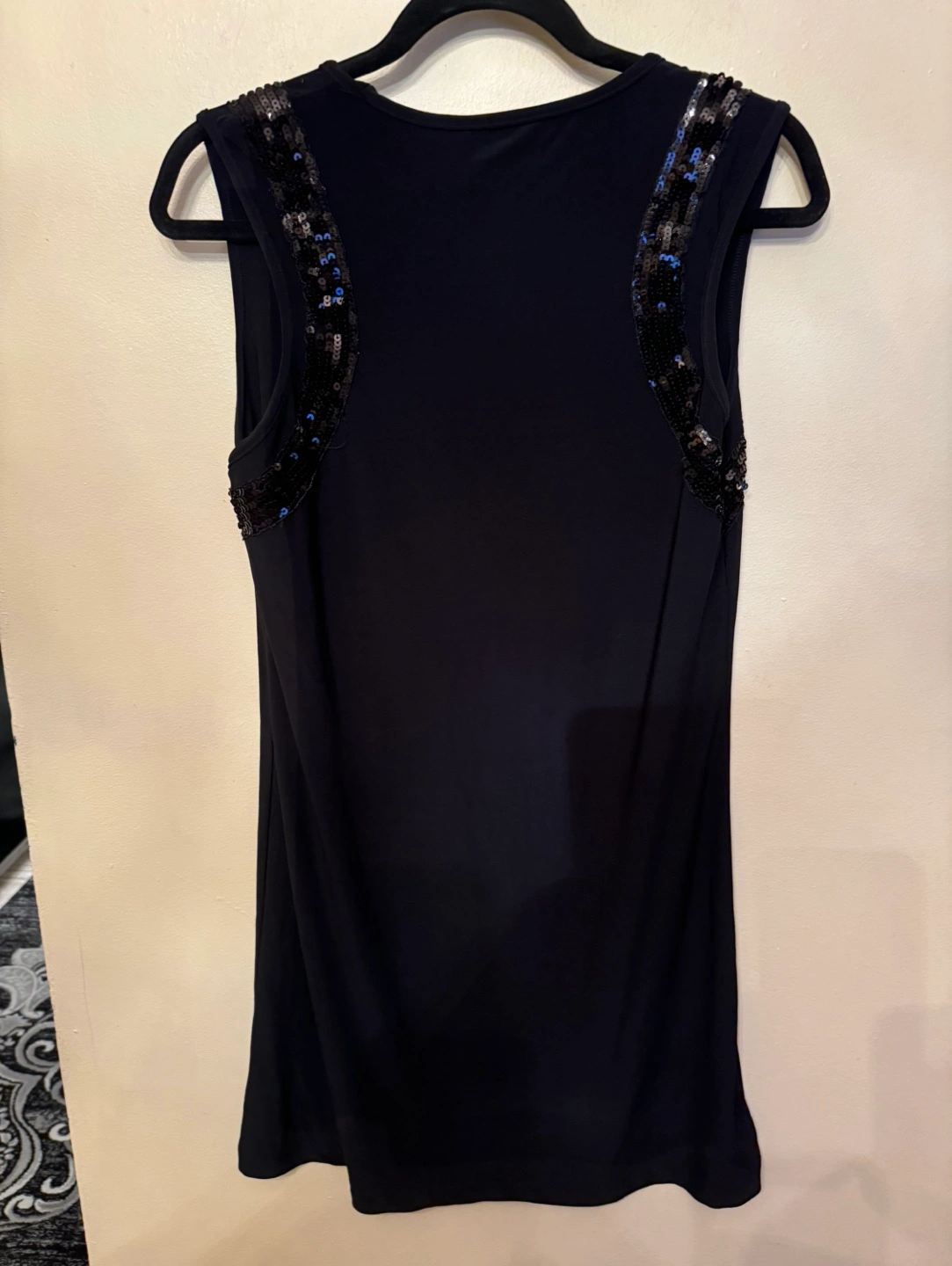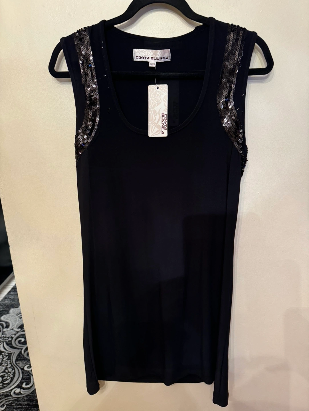 Sleeveless tank top with sequin detail on the shoulders. Great for a night out. Size XL