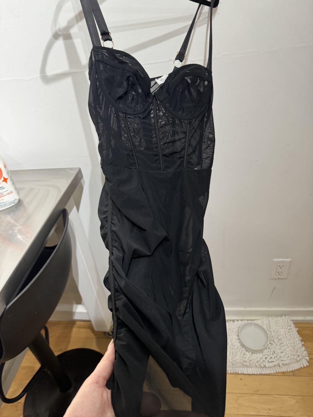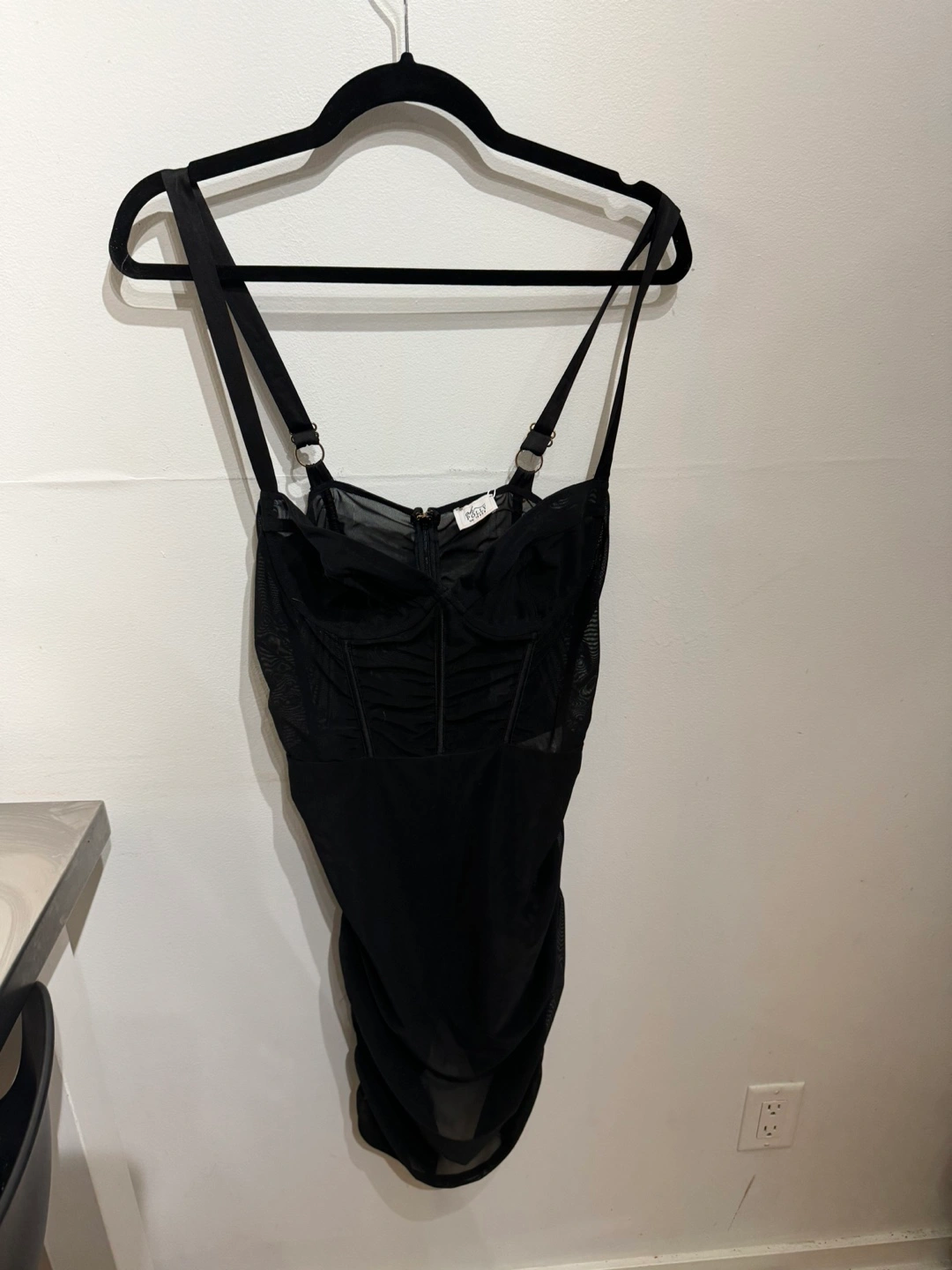 Oh Polly Black Sheer Corset Mini Dress (brand new with tags) Built in Bodysuit