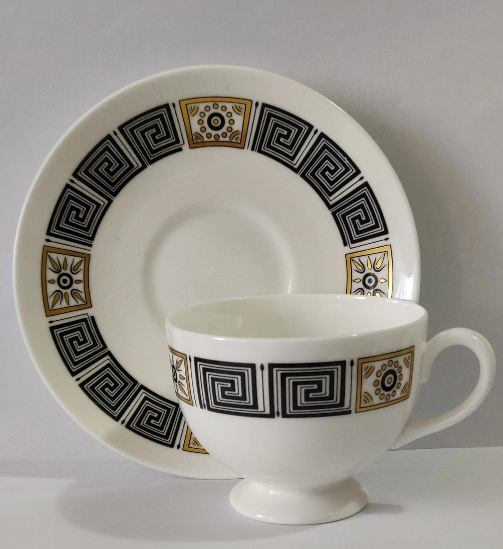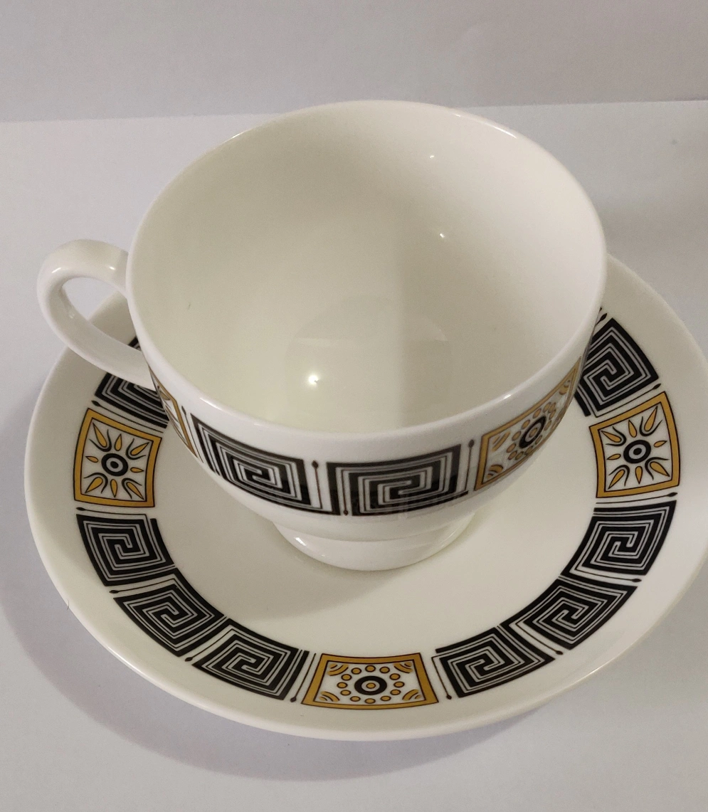 8 Wedgwood bone china tea cups and saucers. Black and gold Greek key pattern. Excellent condition, no chips, cracks or stains. $20 for all. Comes from a smoke-free pet-free home.