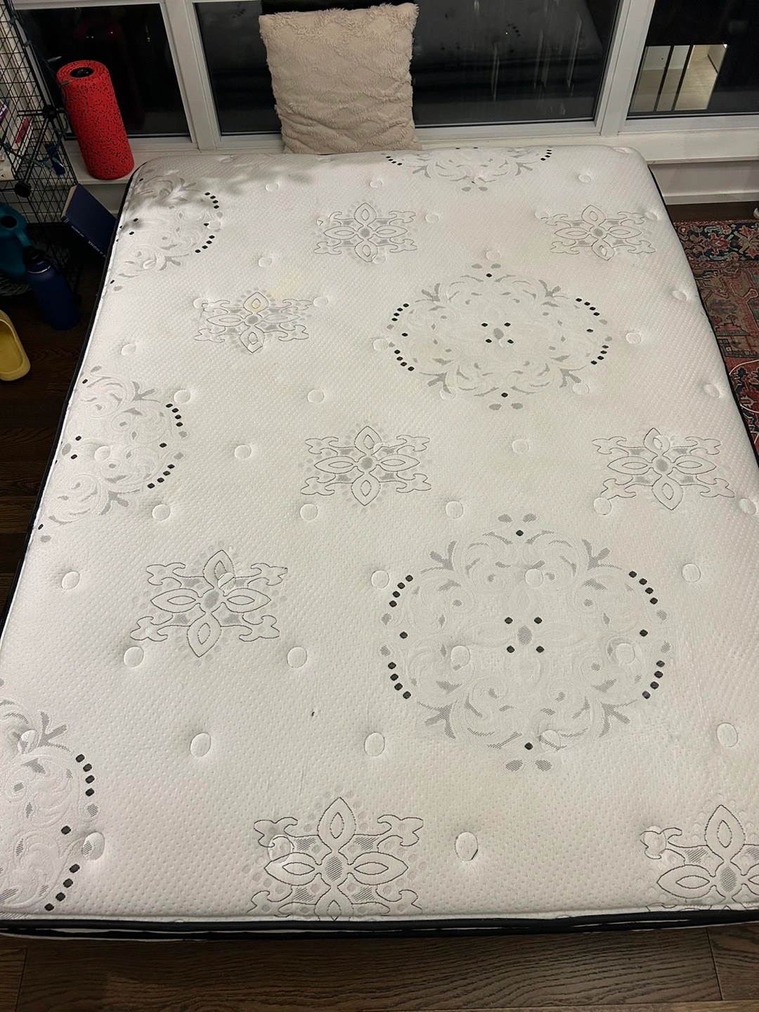 Used mattress - price is so low because I'd rather it go to someone than the trash. Condition is still good. It's a very comfy mattress and 5 years old.