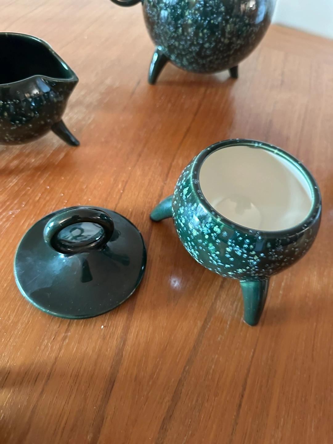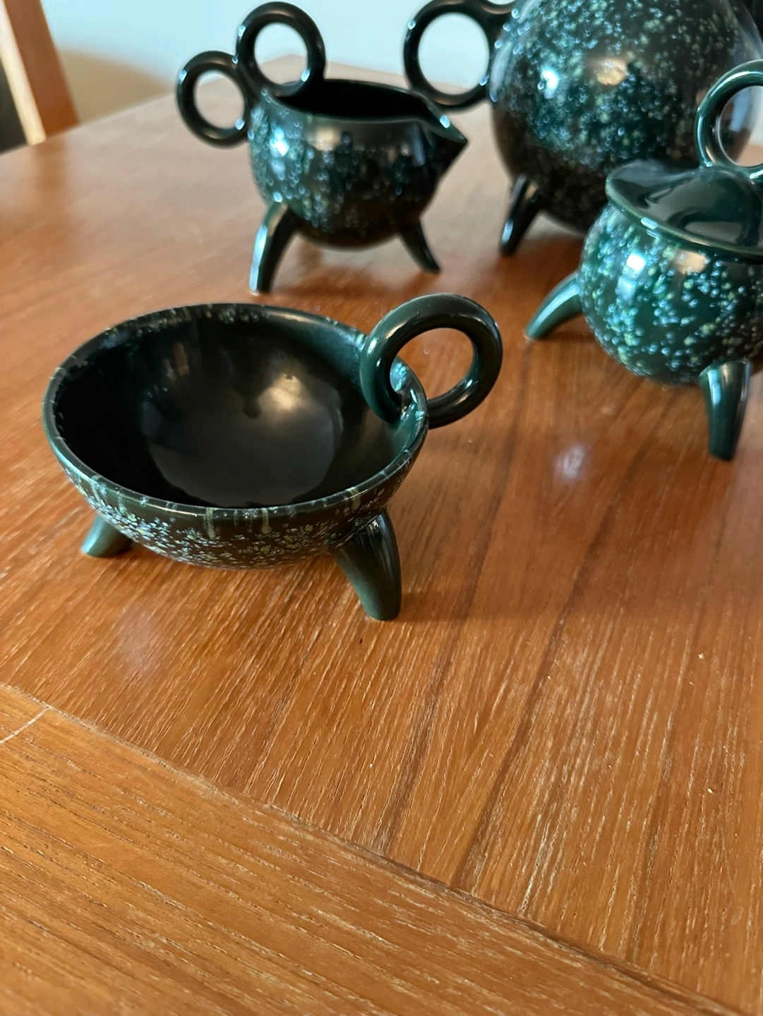 Buy & SellVintage Green Teapot SetVintage Green Teapot Set$72Green tea set with teapot, creamer, sugar bowl with lid, and two cups. Has a speckled glaze.WHERE TO MEETSt. Urbain BagelView MapSELLERverifiedVladimirNE963 reviews0 chats·0 favorites·23 viewsSEND CHAT TO SELLERHi Vladimir! I’m interested in your listing.Hi Vladimir! I’m interested in your listing.Get the Karrot app to chatSign In to chat