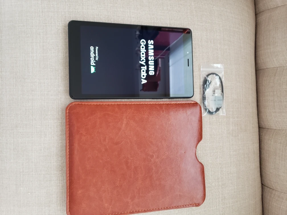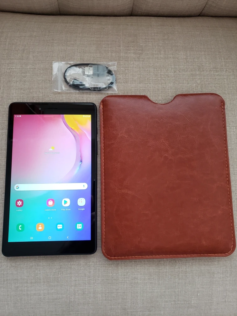 1000+Samsung galaxy tab A 8" 2019 model with 32 gigabytes, hardly ever used, it's like new condition, it comes with charging cable and a leather case. it takes SIM card.