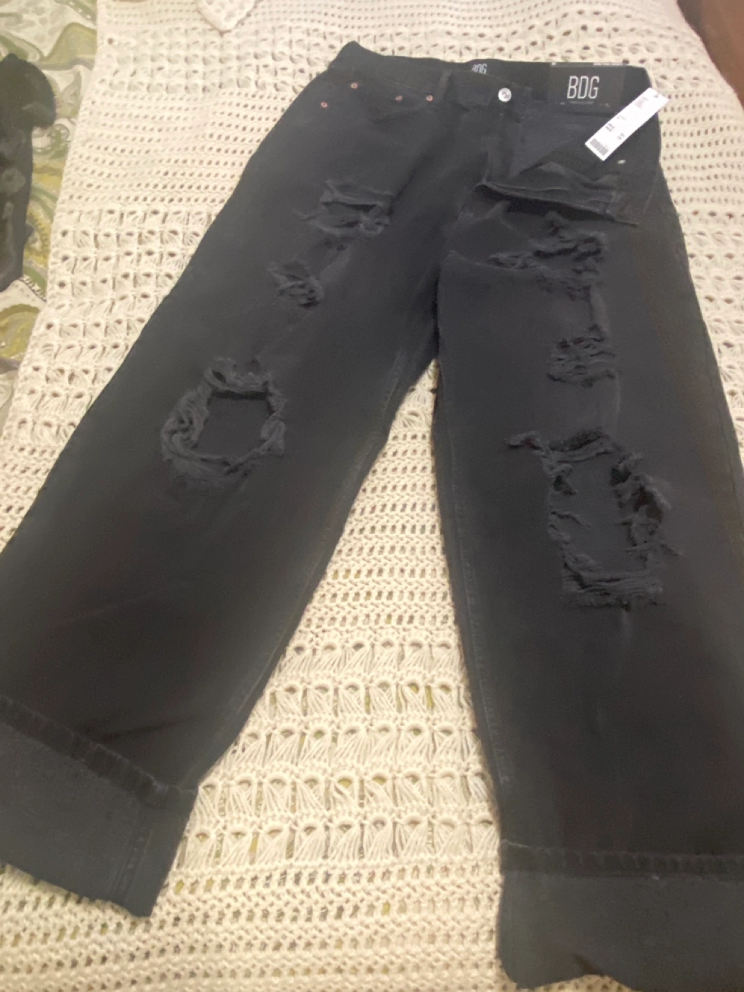 Brand new with tags! Black, high-rise baggy jeans with distressing. Size 34.