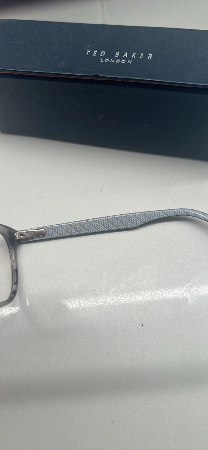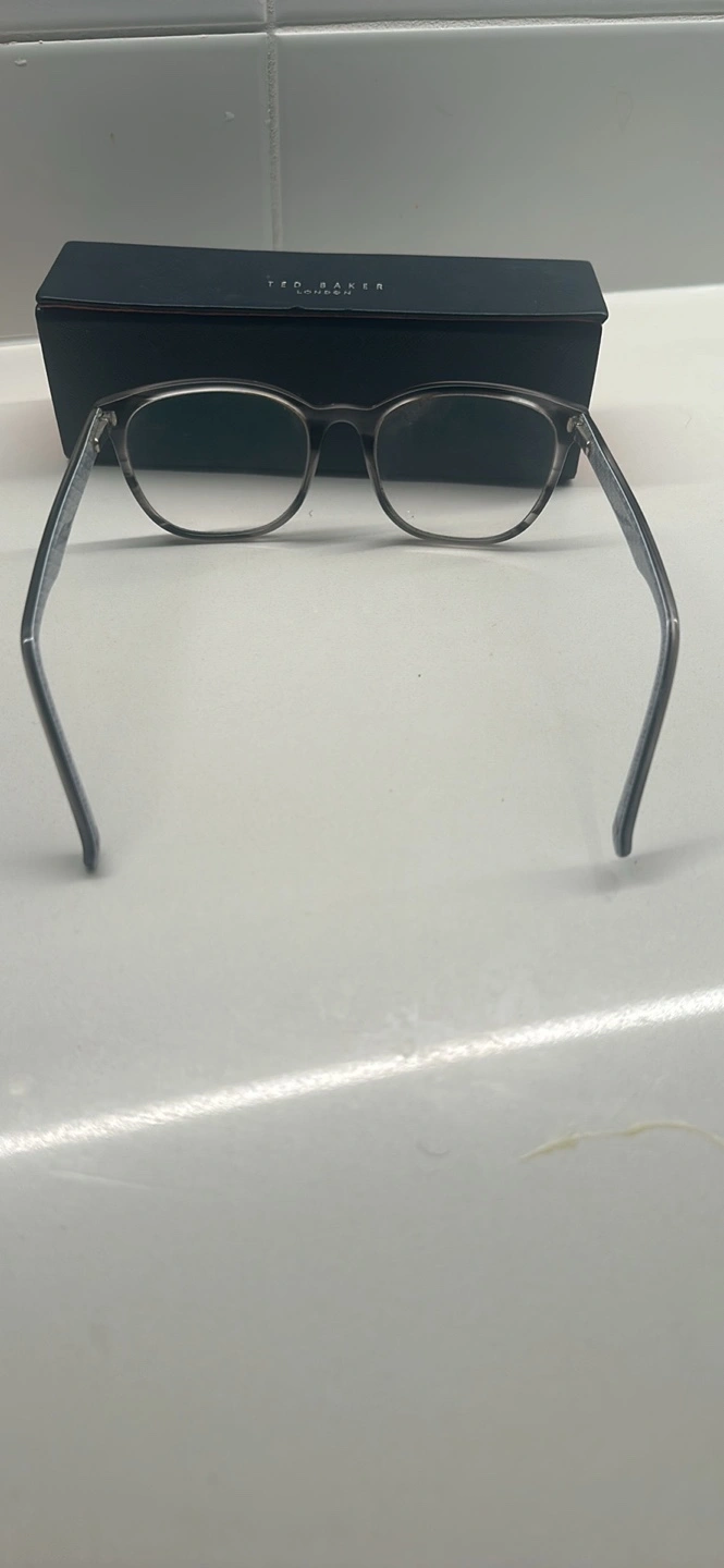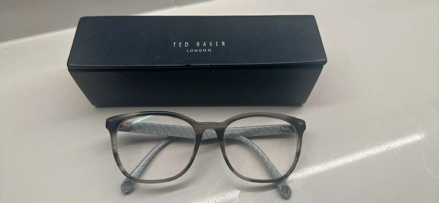 Grey and clear framed glasses with Ted Baker branding on the arms. Comes with case.