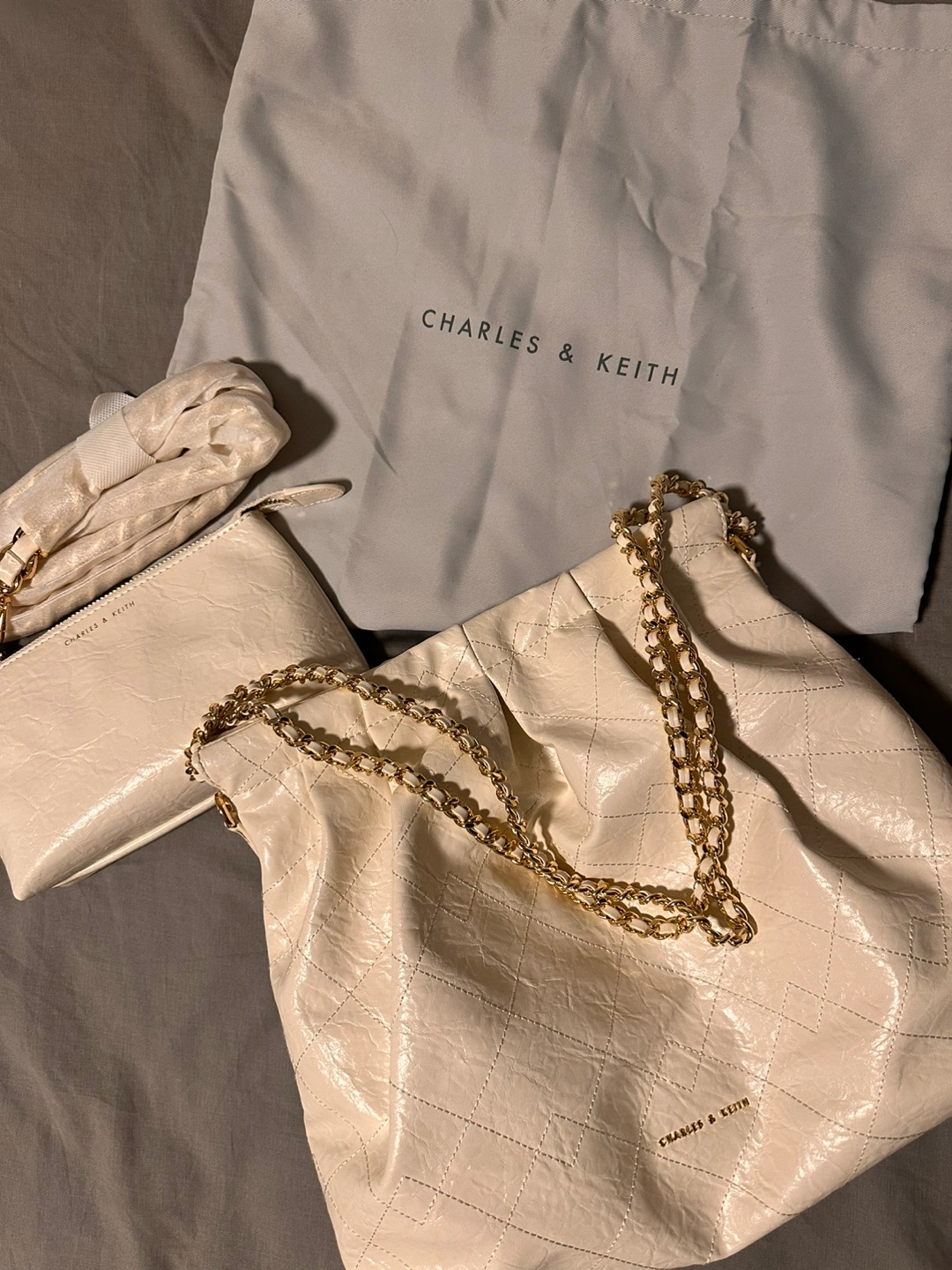 Charles & Keith Double Chain Hobo Bag in Cream