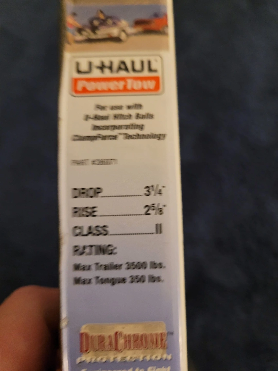 UHaul Towing Ball Mount 3 1/4” Drop with 1 7/8” Tow Ball —Brand new, never used —1 7/8” ball size included —Fits 1 1/4” receivers —For 3/4” shank hitch ball —3500 lbs. gross trailer weight —350 lbs. tongue weight —Class II UHAUL part #36071 Rathburn Rd & Renforth Dr pick up