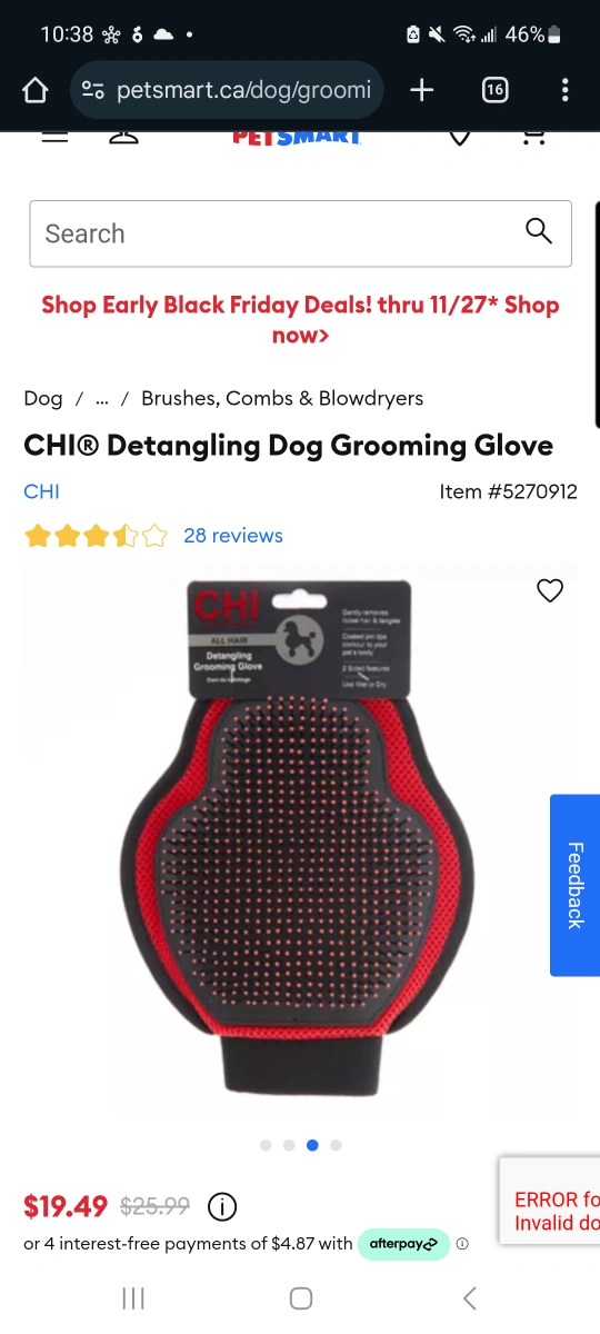 1000+Bought this for my dog but runs away when I even try to brush him with it. Retails for $20+ at PetSmart! https://www.petsmart.ca/dog/grooming-supplies/brushes-combs-and-blowdryers/chi-detangling-dog-grooming-glove-47346.html