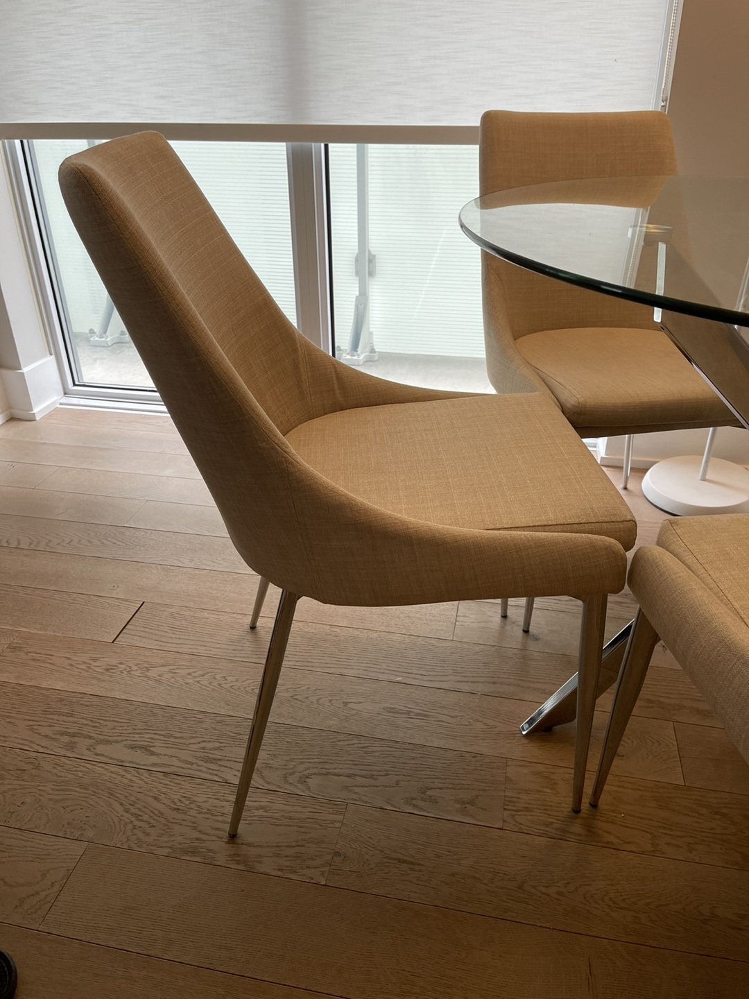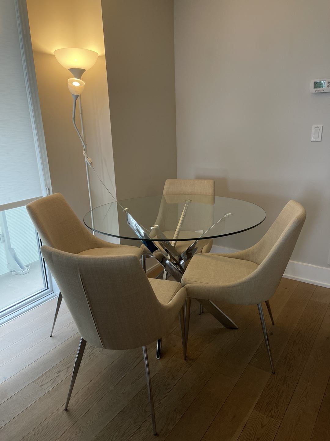 1 / 41 / 4Buy & SellGlass dining table and four chairsGlass dining table and four chairs$225Glass dining table and four chairs. Table has a chrome base. Chairs have a beige fabric seat and chrome legs.WHERE TO MEETM5SView MapSELLERHalaAnnex413 reviews5 chats·7 favorites·105 viewsSEND CHAT TO SELLERHi Hala! I’m interested in your listing.Hi Hala! I’m interested in your listing.Get the Karrot app to chatSign In to chat