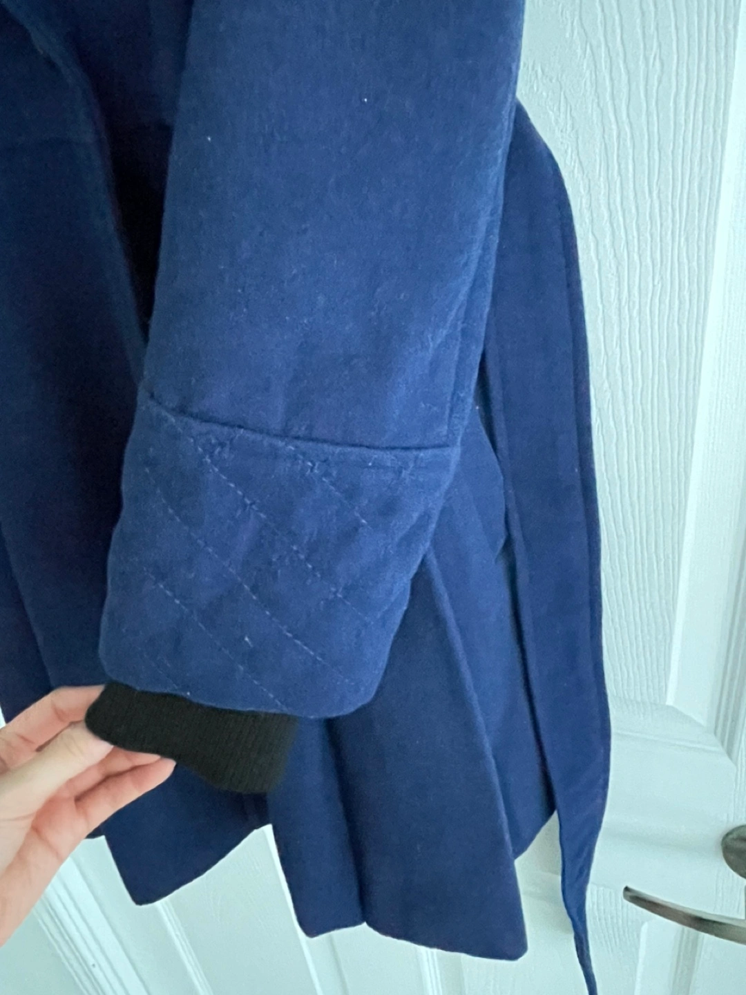 The coat comes down to just above the knees. From a pet-free, smoke-free home.