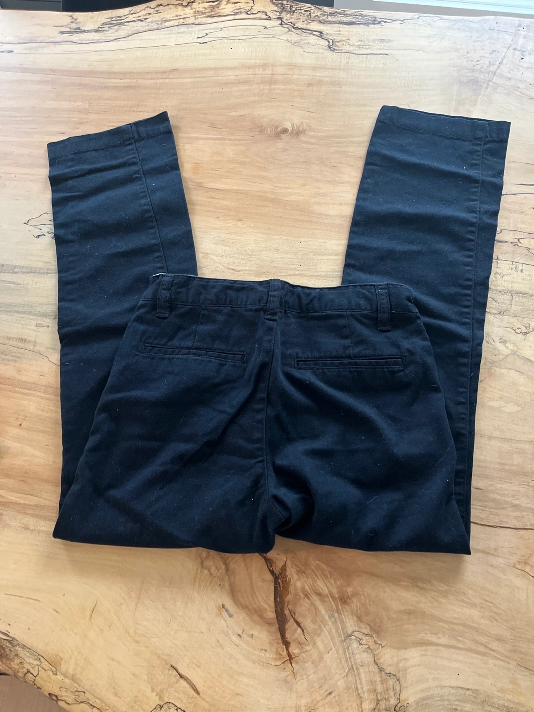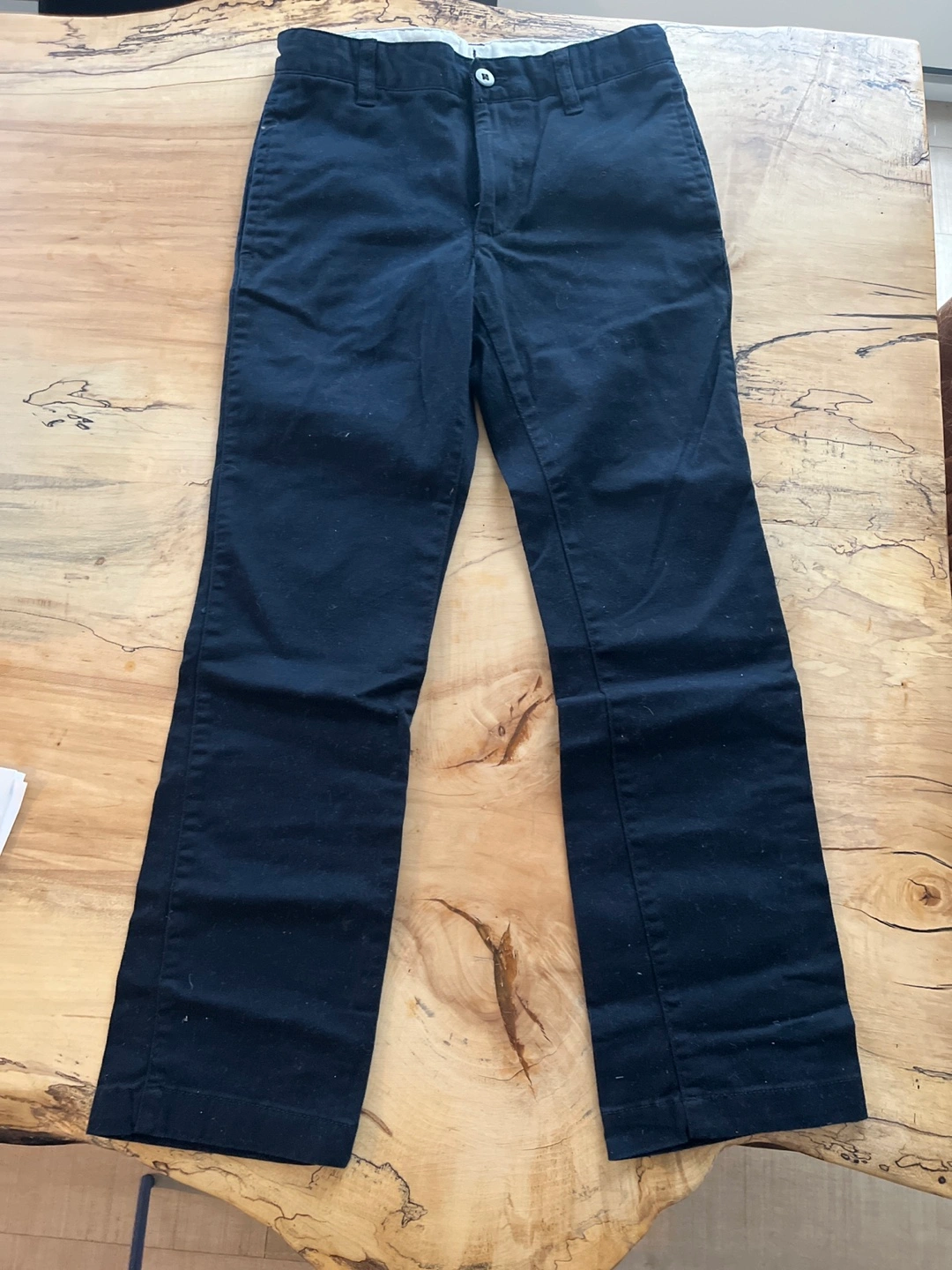 Black chino pants for boys. Straight leg, flat front. No rips or tears. Good for uniform pants for school. Size 12.