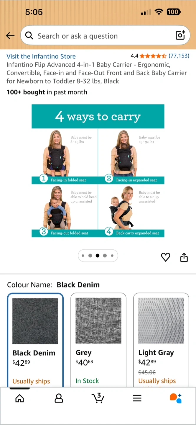 Infantino Flip Advanced 4-in-1 baby carrier. It's a convertible, face-in and face-out carrier for newborns to toddlers. Ergonomic design. Suitable for babies 8-32 lbs.