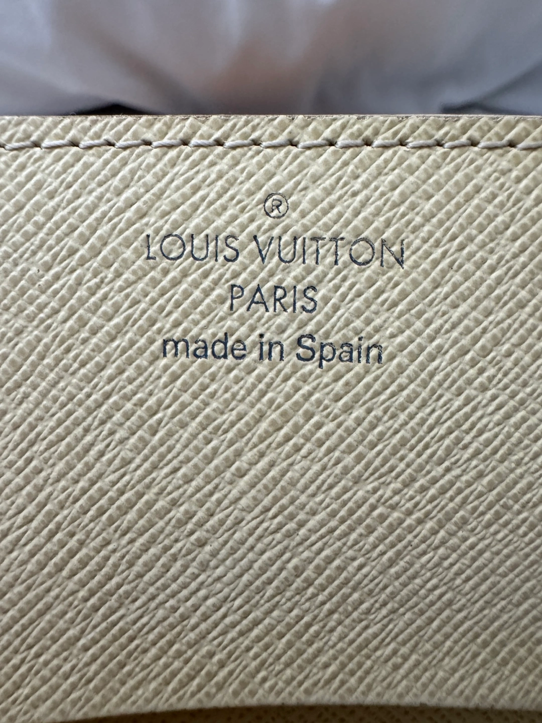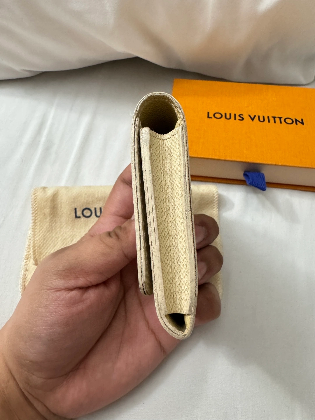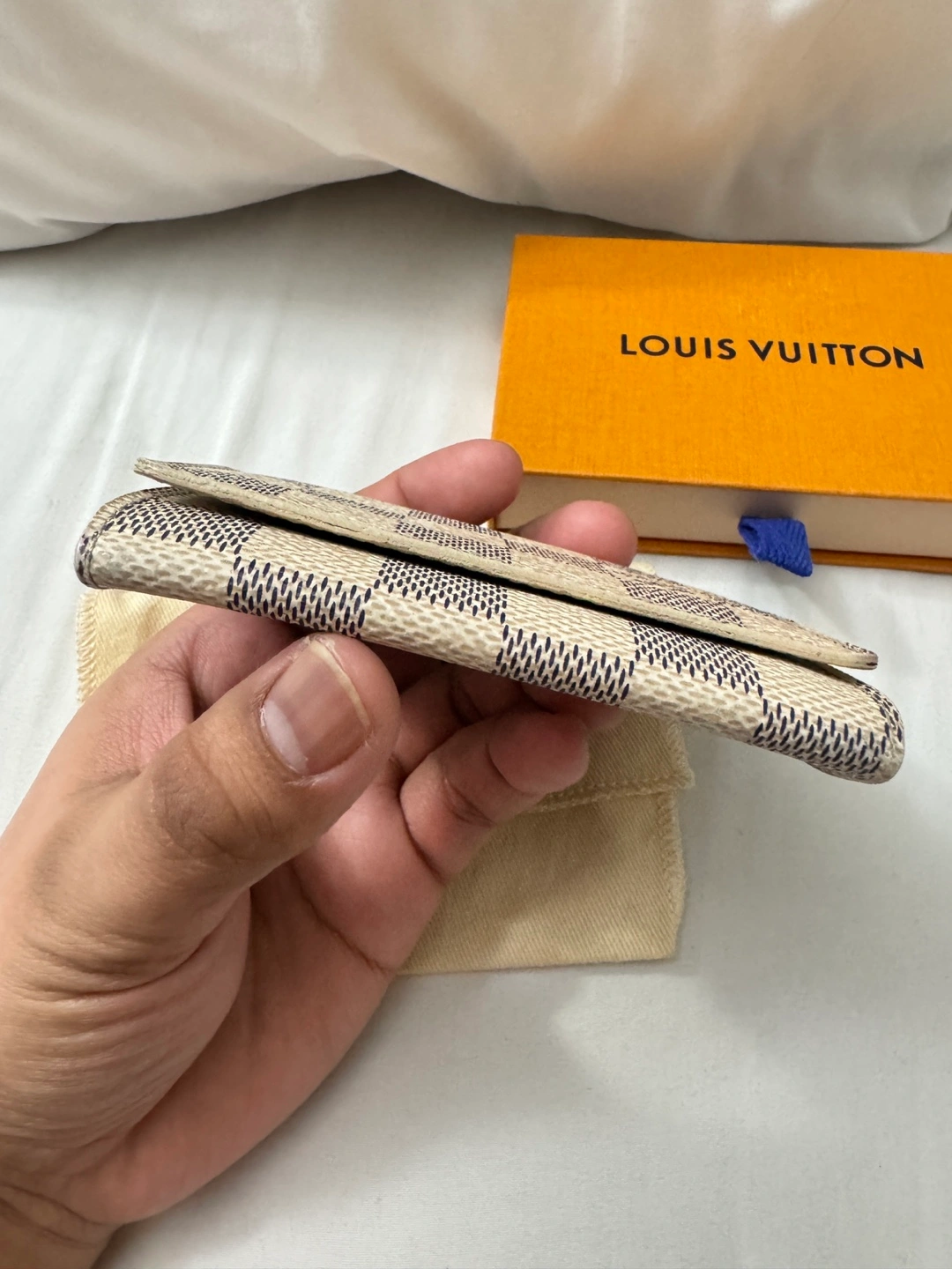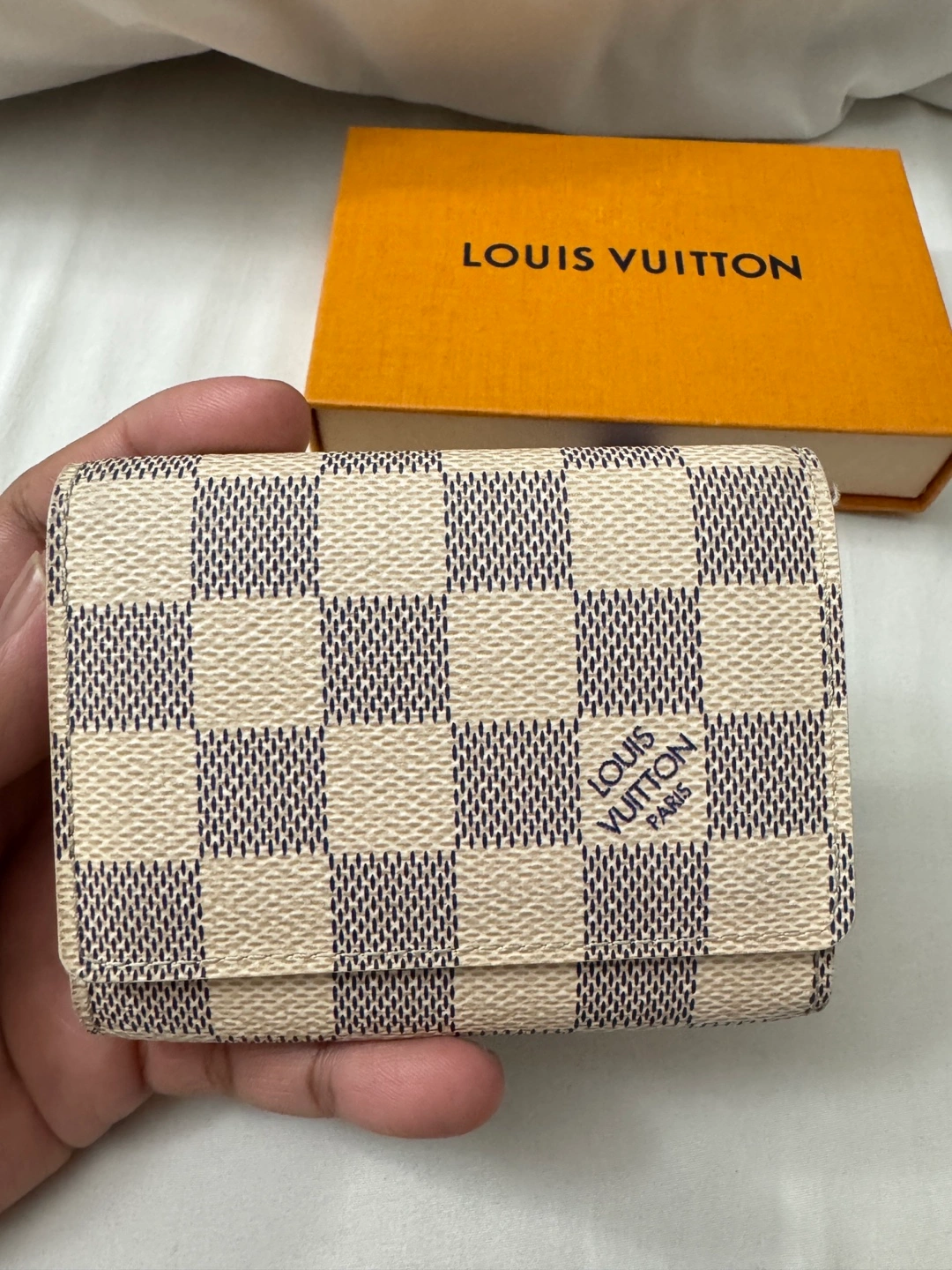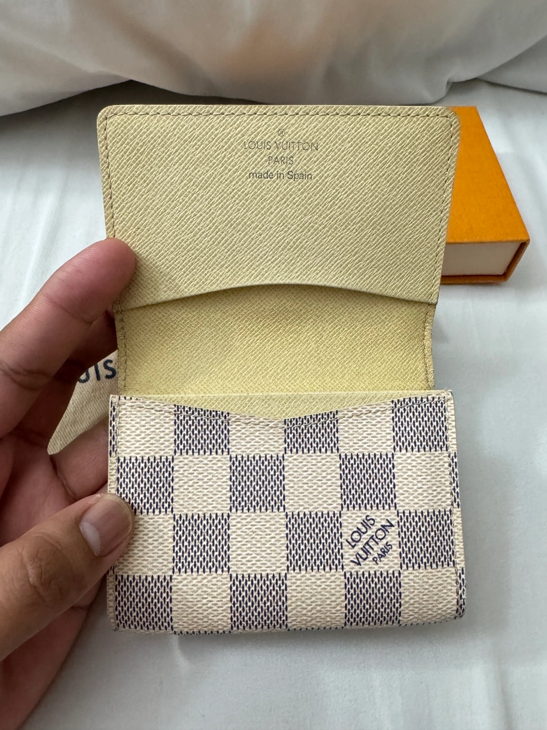 Louis Vuitton card holder in Damier Azur canvas. Includes original box and dust bag. Canvas material with leather lining.