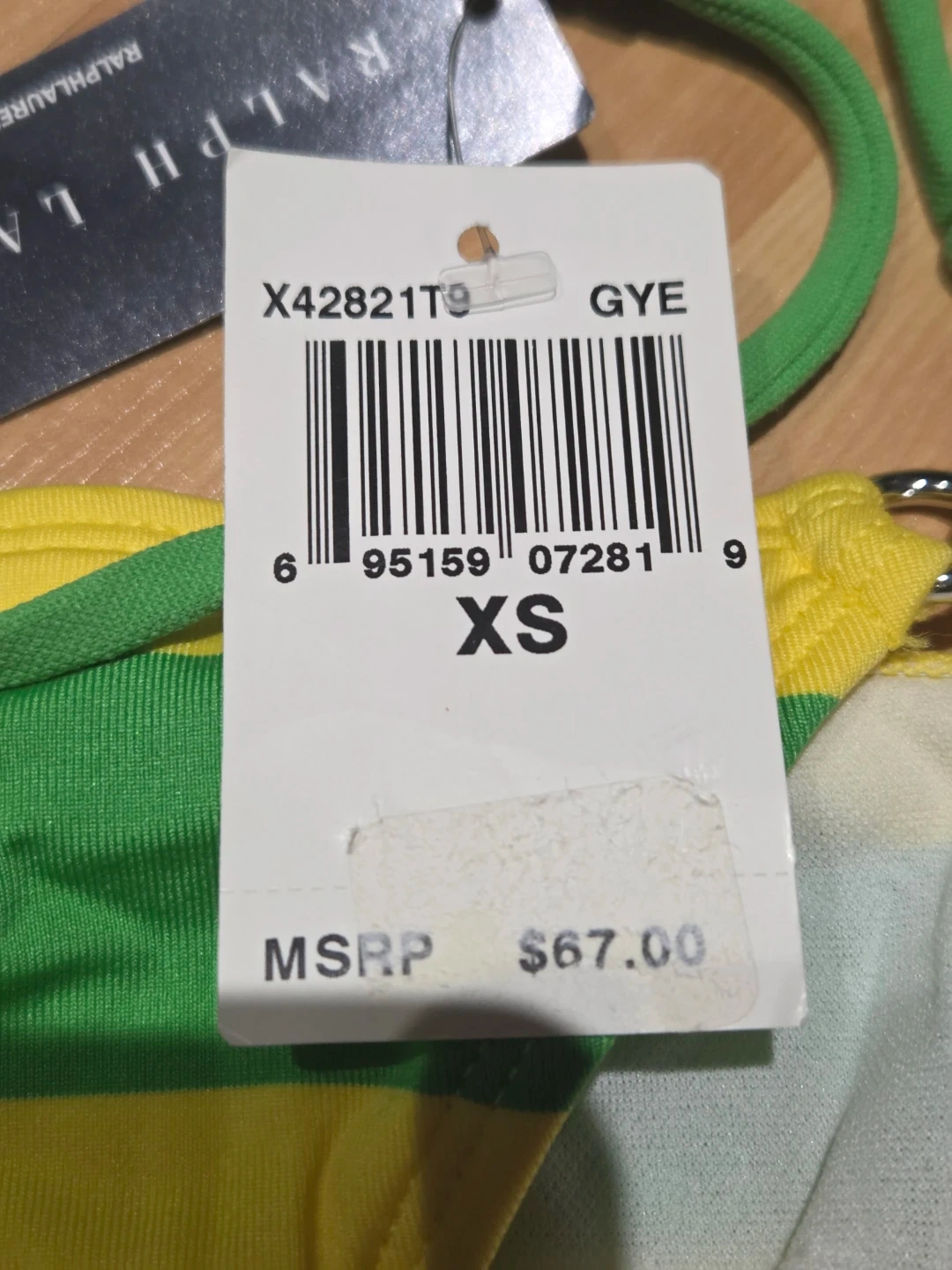 Ralph Lauren Bikini XS Green Yellow Polo Pony Stripe