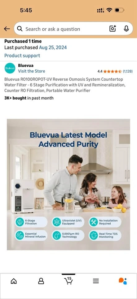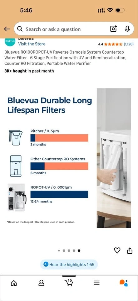 Bluevua RO100ROPOT-UV Reverse Osmosis System Countertop Water Filter - 6 Stage Purification with UV and Remineralization. 1.5 years old. Pickup near diner bar in Rego Park.